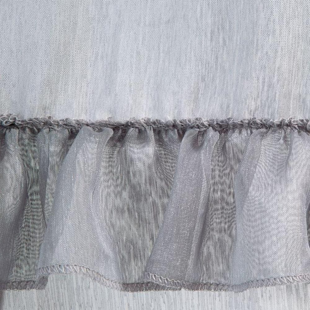 Svetla zavesa, sešita iz tkanine s strukturo majhne mavrice, ki jo na dnu krasijo trije volančki. Romantična dekoracija bo delovala tudi kot lahka zavesa. širina: 140 cm, dolžina: 270 cm, barva: svetlo siva, teža: 50 GSM, sestava: 100 % poliester