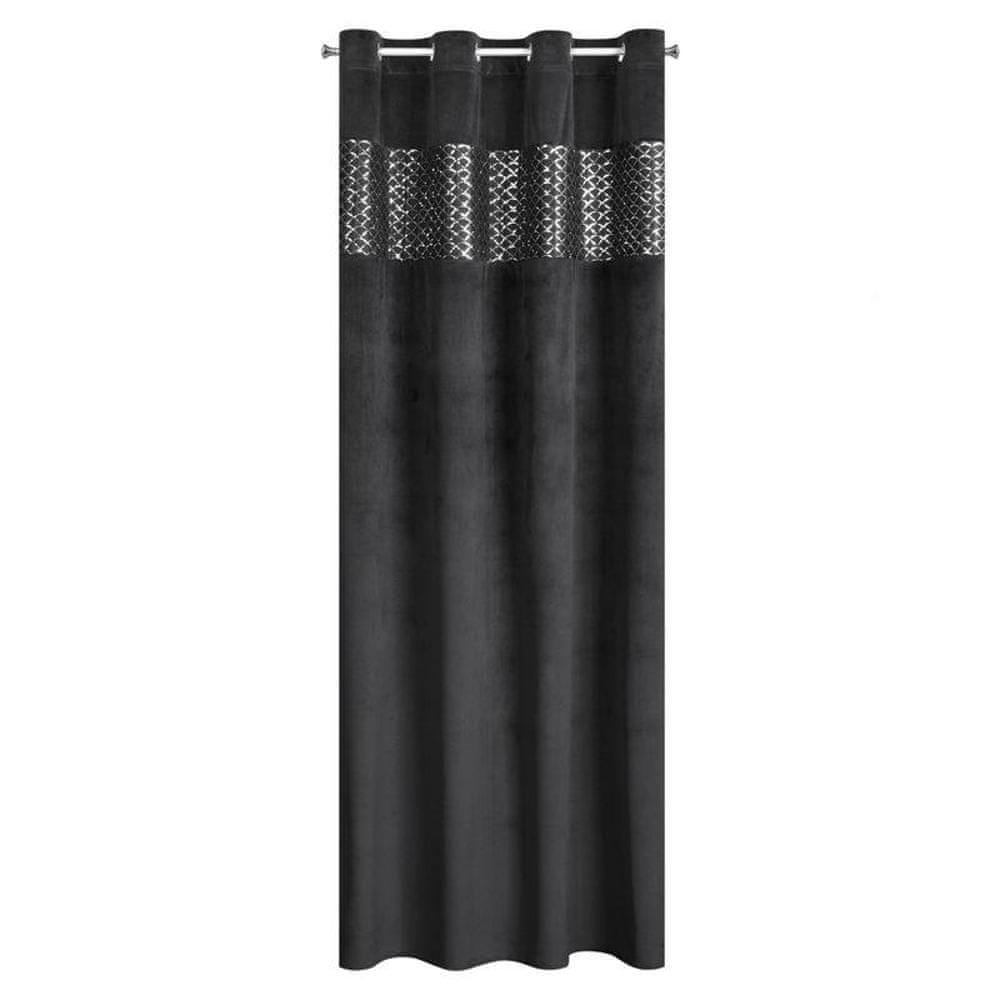 Žametna zavesa, okrašena z vezeninami in bleščicami širina: 140 cm, dolžina: 250 cm, barva: črna, teža: 200 GSM, sestava: 100 % poliester: 100 % poliester Celoten opis