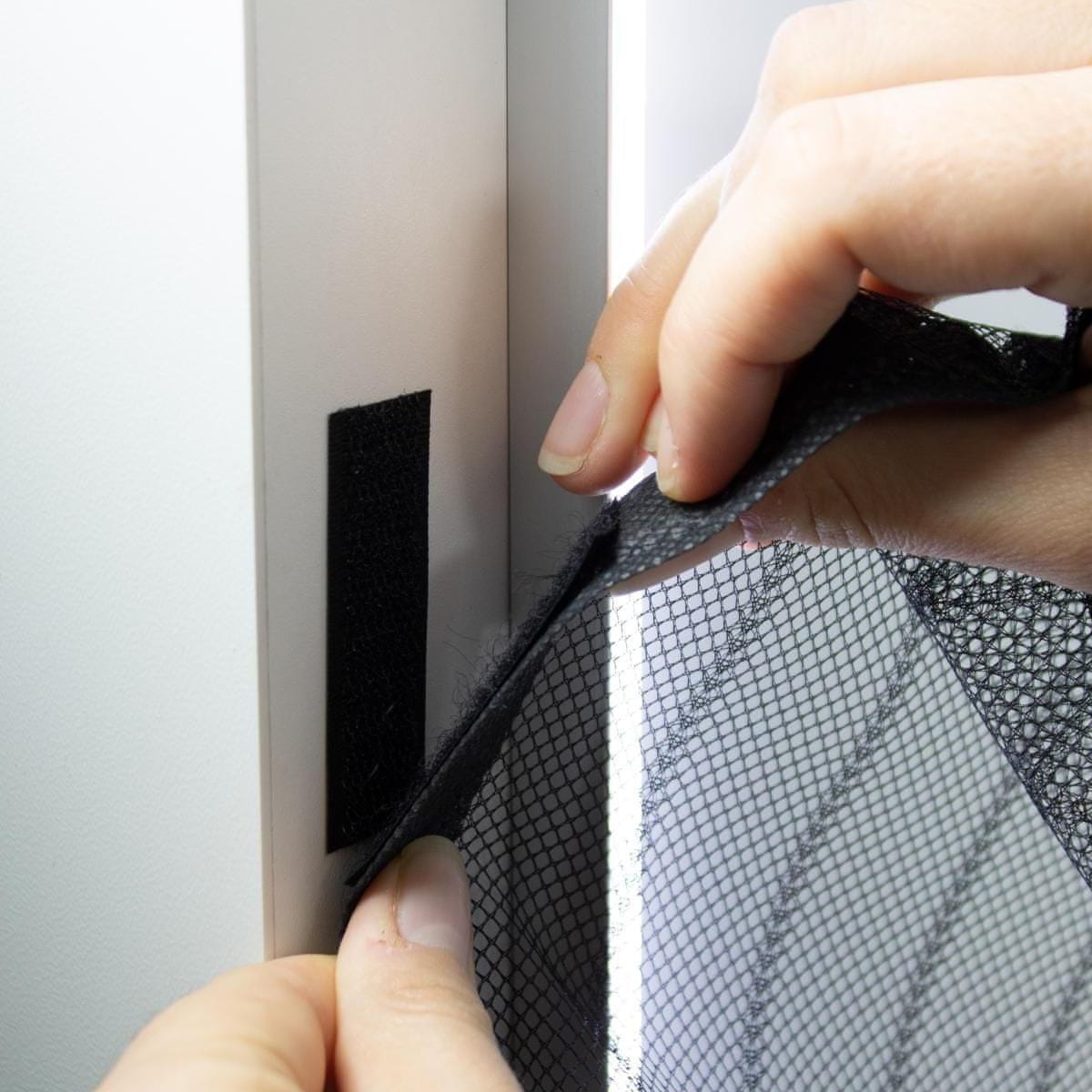 Zagotovo je čudovito, ko lahko na topel poletni večer pustimo balkonska vrata odprta? Vendar pa ni tako zabavno prinesti komarje, muhe ali ose v dom. S tem upogljivim komarnikom se izognete tej težavi! Komarnik je sestavljen iz dveh delov, ki se pritrdita na vsako stran vratne odprtine s pomočjo priloženega samolepilnega ježka. Mreža je opremljena z 18 magneti, ki zaprejo mrežo, ko greste skozi. Paket vključuje tudi sponke za alternativno pritrditev.