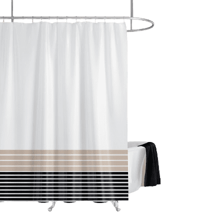 Priresa Zavesa za tuš LINE 180x200 cm | Vodoodporna tekstilna kopalniška zavesa s potiskom + 12 plastičnih obročev