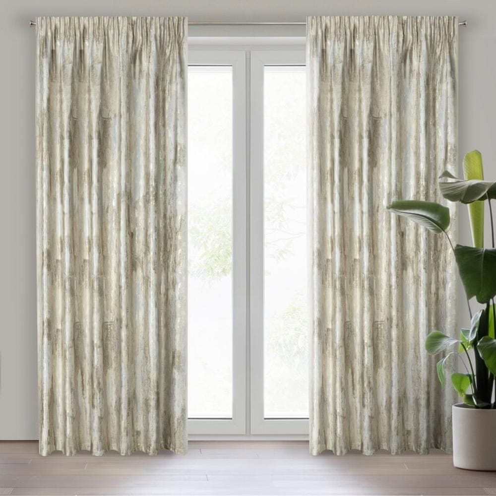 Žametna zavesa s kovinskim tiskom širina: 140 cm, dolžina: 270 cm, barva: krem, teža: 200 GSM, sestava: 100% poliester