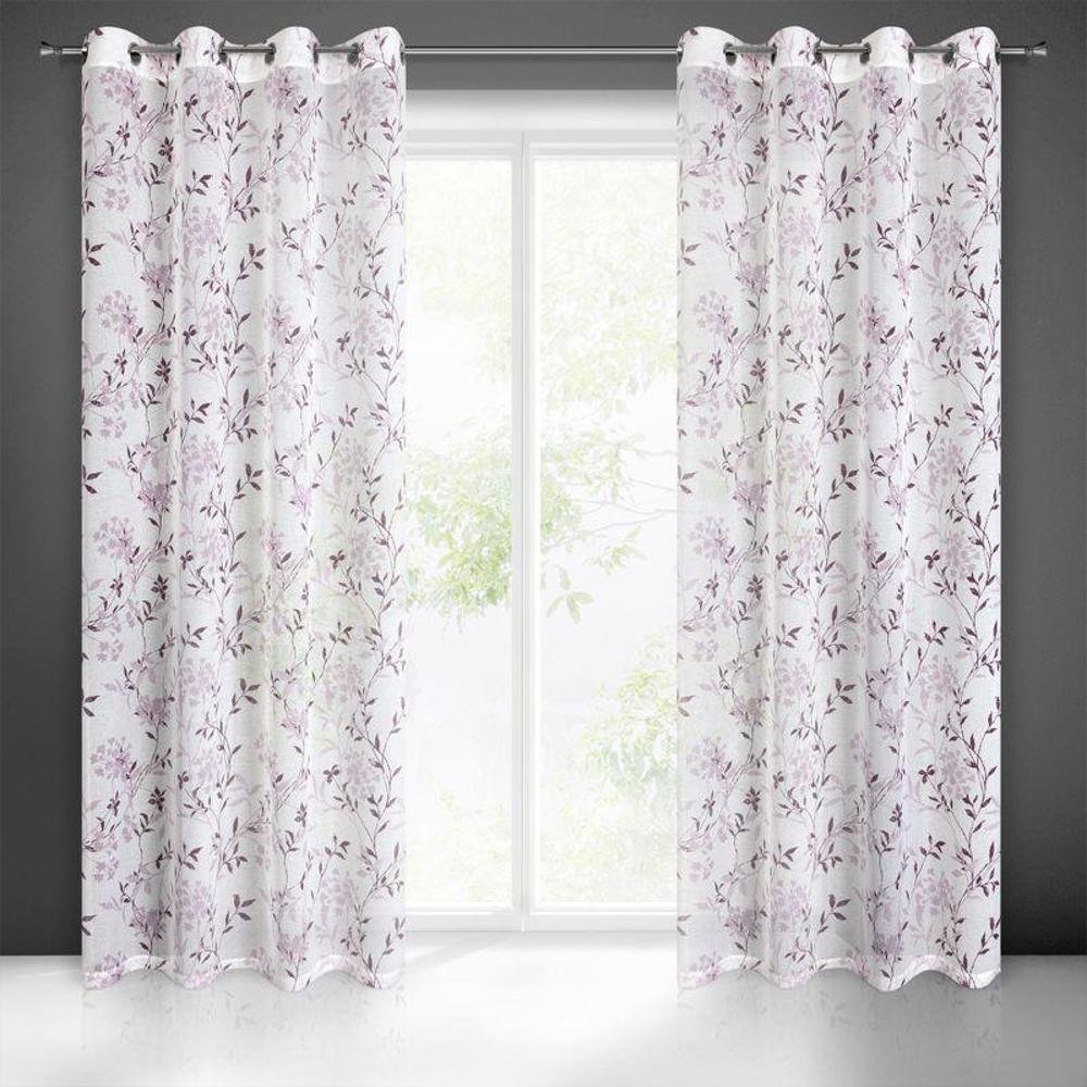 Gotova zavesa iz potiskanega etamina, širina: 140 cm, dolžina: 250 cm, barva: bela, teža: 75 GSM, sestava: 100% poliester