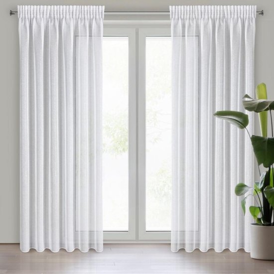 GOTOVA ZAVESA LENA NA TRAKU 140 X 270 CM, BELA Celoten opis