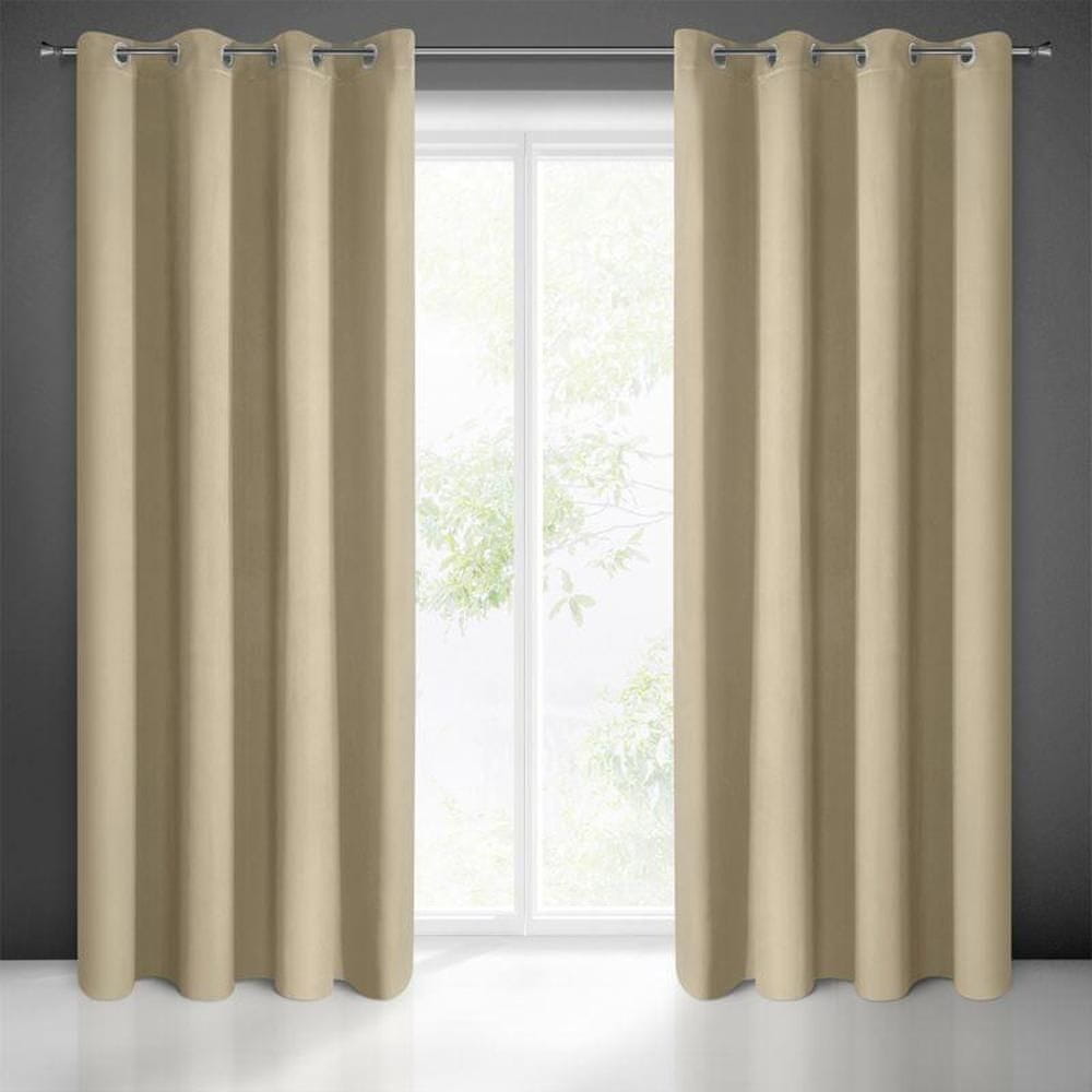 Elegantna enobarvna zavesa iz blaga z visoko stopnjo zatemnitve. Mesnat, mat material brez okraskov je univerzalni element notranje opreme. širina: 135 cm, dolžina: 250 cm, barva: bež, teža: 210 GSM, sestava: 100% poliester