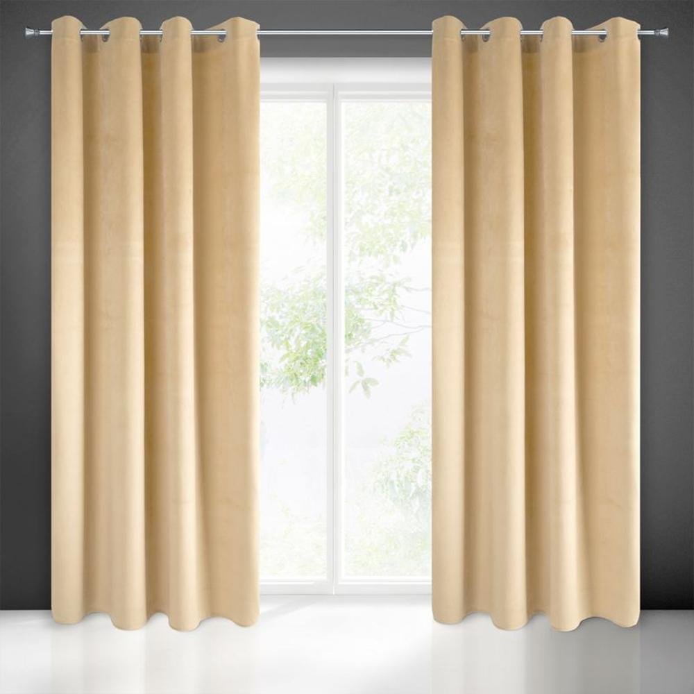 Mehka zavesa iz enobarvnega žameta z značilnim leskom žameta. Gosta tkanina zagotavlja visoko stopnjo zatemnitve notranjosti. širina: 140 cm, dolžina: 250 cm, barva: krem, teža: 215 GSM, sestava: 100% poliester