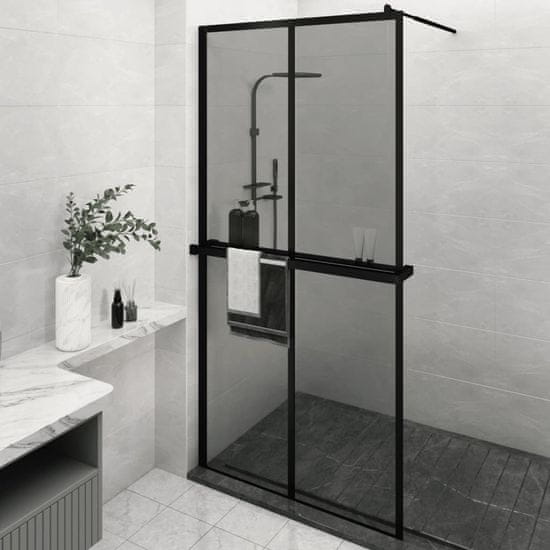 shumee Pregrada za tuš s polico črna 118x190 cm ESG steklo in aluminij