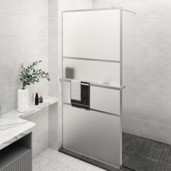 shumee vidaXL Pregrada za tuš s polico krom 100x195 cm ESG steklo in aluminij