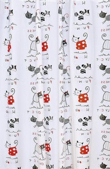 Vinilna vodoodporna tuš zavesa z motivom mačk, 180×180 cm – AQUALINE Celoten opis