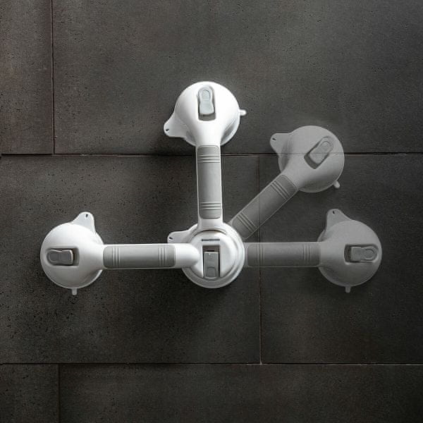 Ta kotni dvojni ročaj s priseski je ergonomičen in prenosljiv. Zagotavlja neprecenljivo pomoč in varnost v različnih delih kopalnice za starejše in osebe z omejeno mobilnostjo.