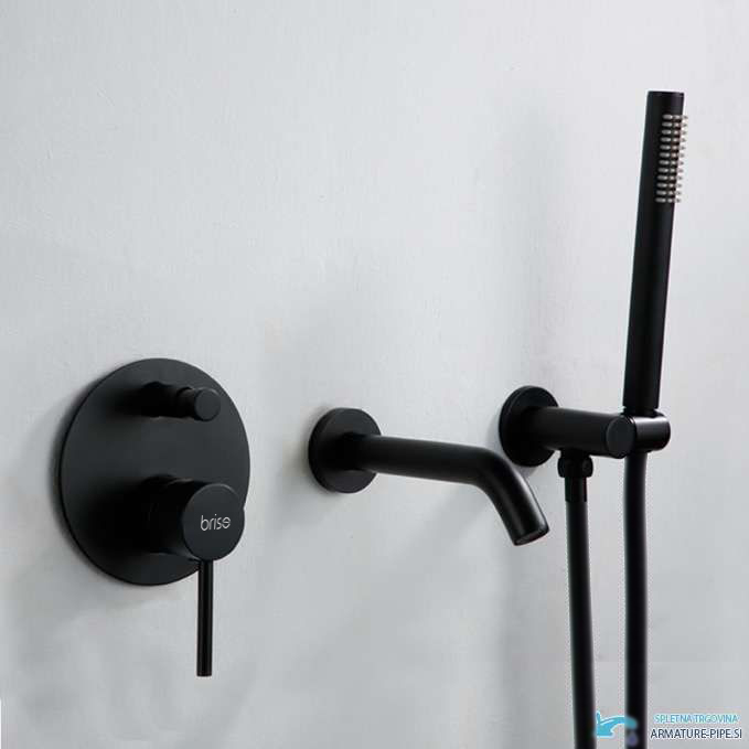 shumee Luksuzna medeninasta vgradna pipa za kad, stenska, črna