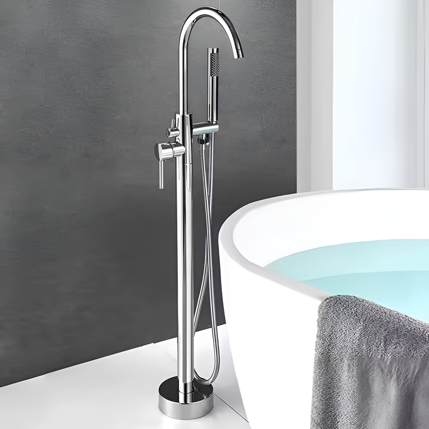 Dobro se poda k kopalnim kadem prostostoječi . Zaradi vitke oblike, klasičnega loka izliva in udobne tuš glave je vsak trenutek kopanja edinstven. Je popolna kombinacija stila, udobja in kakovosti , ki dvigne standard vsake kopalnice.
