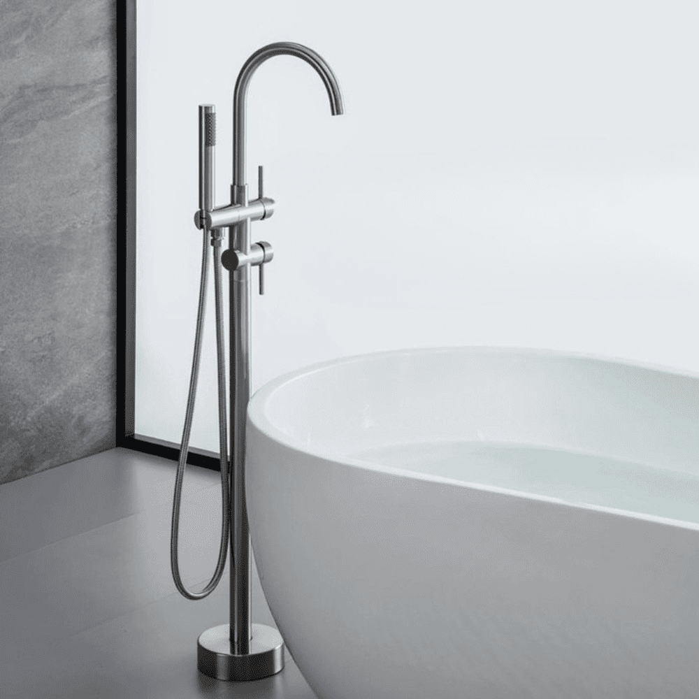 shumee Samostoječa medeninasta pipa za kad, ekskluzivni baker, kromirana prha