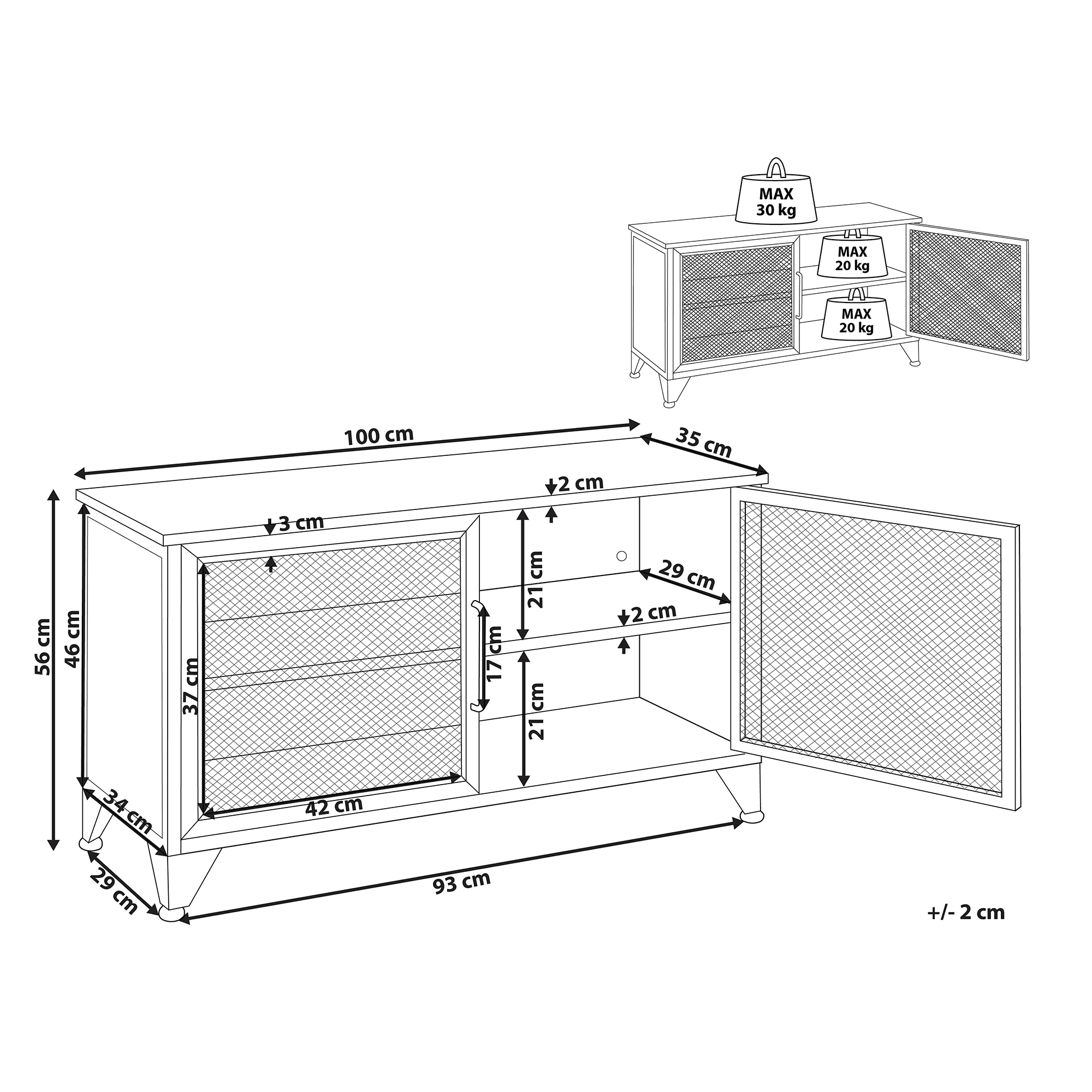 Opremite svojo dnevno sobo s to televizijsko mizico z dvema vratoma in notranjosti dodajte pridih industrijskega sloga. Celoten opis
