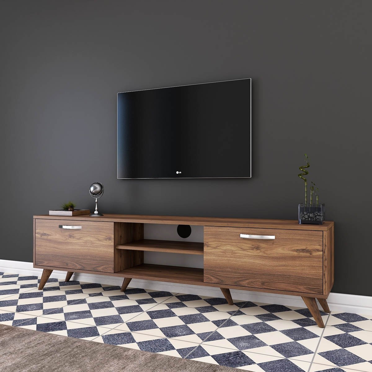 Sodobna komoda ARTEST v barvi oreha je odličen dodatek vsakemu domu. Ima eleganten videz, ki se bo prilegal v vsak notranji dekor. Komoda ima predal na levi in desni strani in nudita veliko prostora za shranjevanje predmetov. Na sredini ima eno polico, ki je idealna za knjige, dekorativne Celoten opis