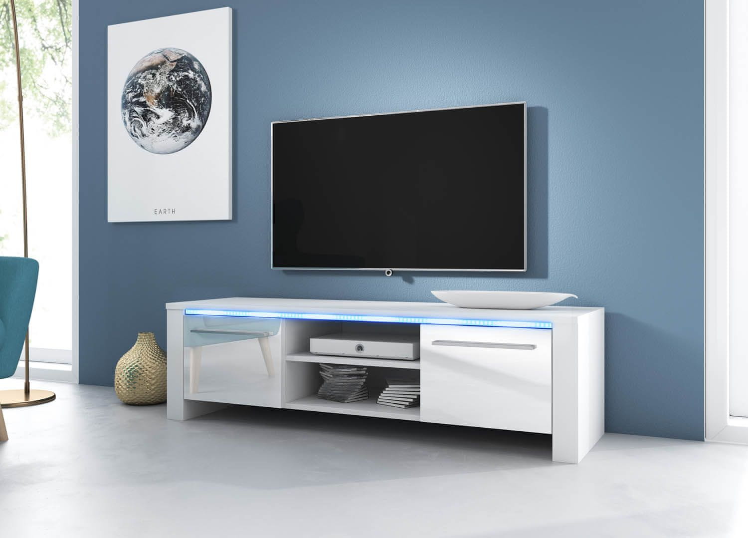Furnitura Moderna TV omarica MAKS bela visoki sijaj 140 cm + LED