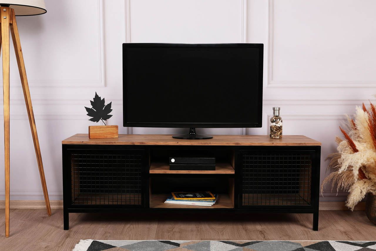 Tv omarica CLINTON ima dvoja vratca, ki so izdelana iz kovine, kar ji daje močan in sodoben videz. Kovinska vratca so idealna izbira za tiste, ki želijo pohištvo, ki je trpežno in odporno na obrabo. Omarica ima tudi široko polico, na katero lahko postavite velik TV, razne slike in Celoten opis
