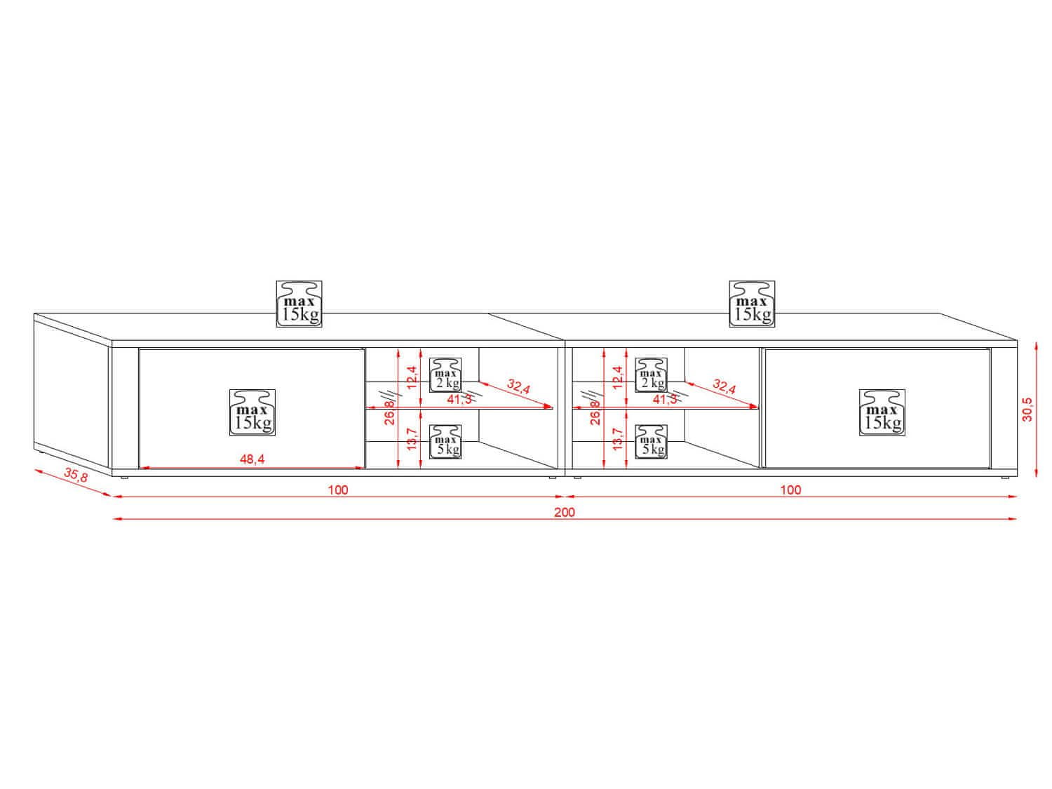 | Dimenzije (širina x višina x globina): | 200×30,5×35,8 cm |