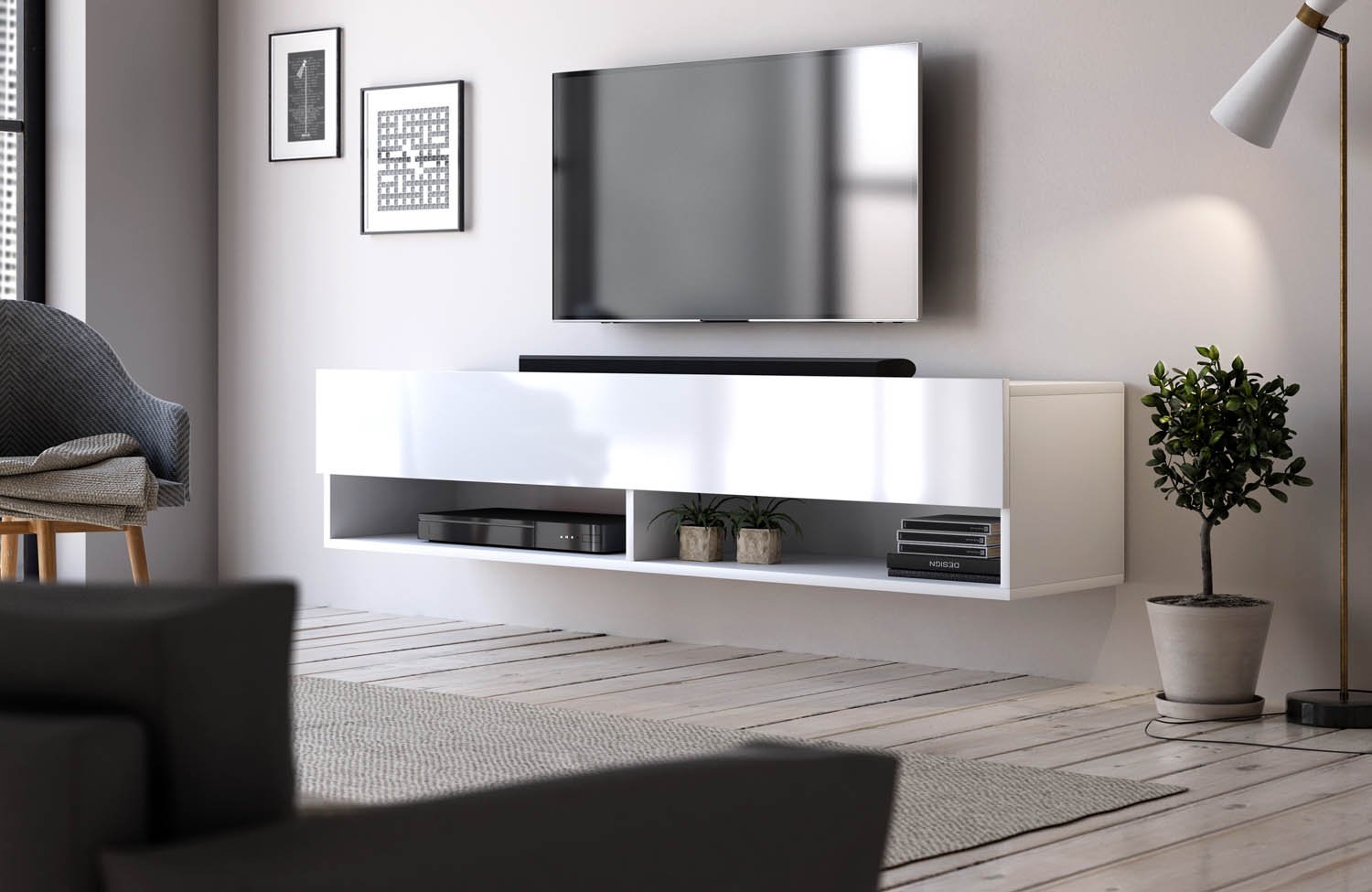 Je vaš dom pripravljen za novo pohištvo vendar vam primanjkuje prostora? Viseča TV omarica DORI Bela visoki sijaj 140 cm je izdelan z namenom, da bo vaš dom na preprost način videti bolj eleganten. Dekorirajte svojo dnevno sobo s TV regalom, s katerim bo vaš dom izgledal večji in lepo pospravljen. Da zagotovite, da vaš dom ne postane prenatrpan in poln navlake ste verjetno še posebej pozorni pri izbiri nobega pohištva. Če v vašem domu ni veliko prostora je določitev postavitve precej težavna. Zato je ta TV regal zasovan z namenom, da naredi vaš dom bolj prostoren in posledično tudi bolj udoben.