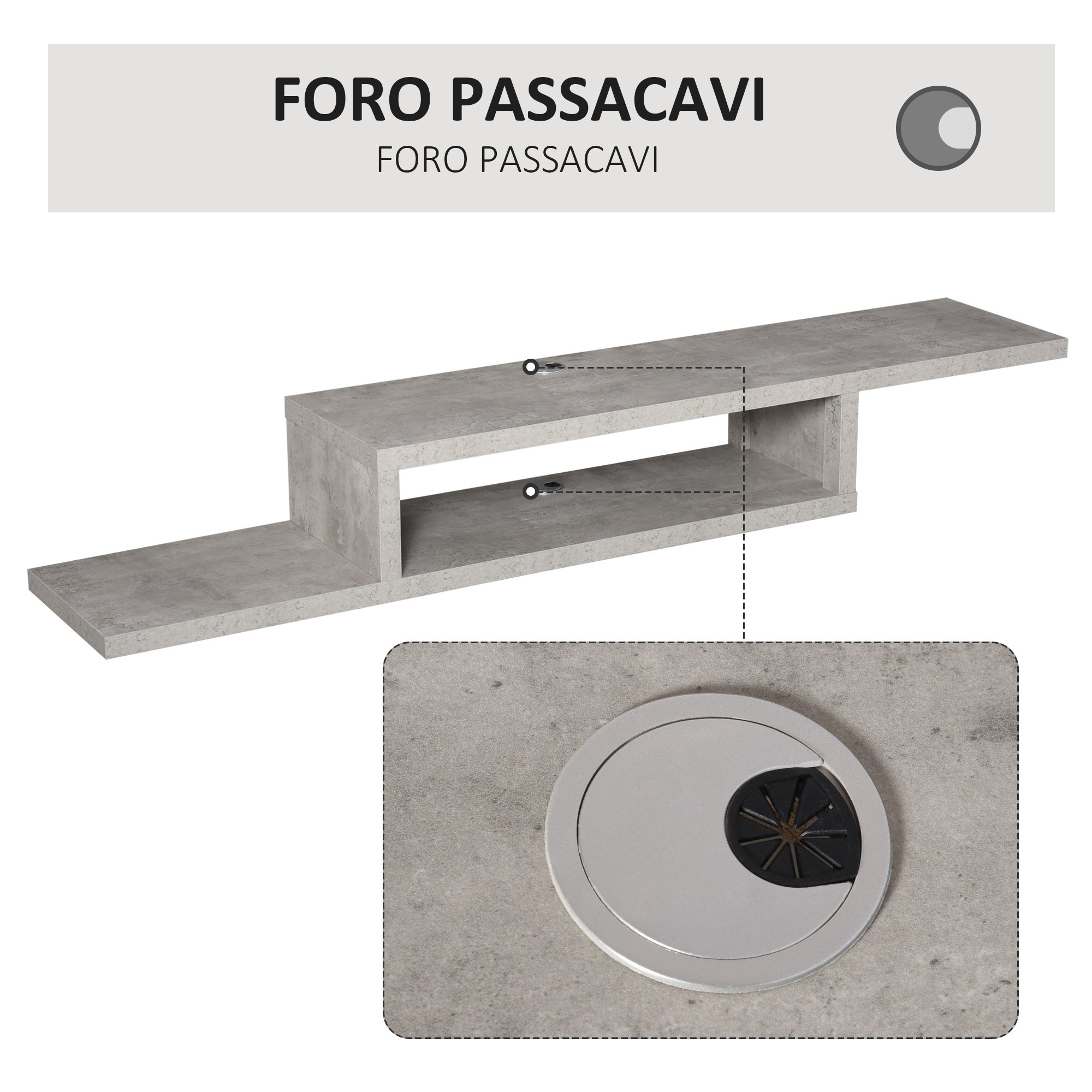 HOMCOM HOMCOM Cementno siva moderno oblikovana stenska omarica pod televizorjem z dvema policama in vpetji, 152,4 × 29,8 × 21 cm