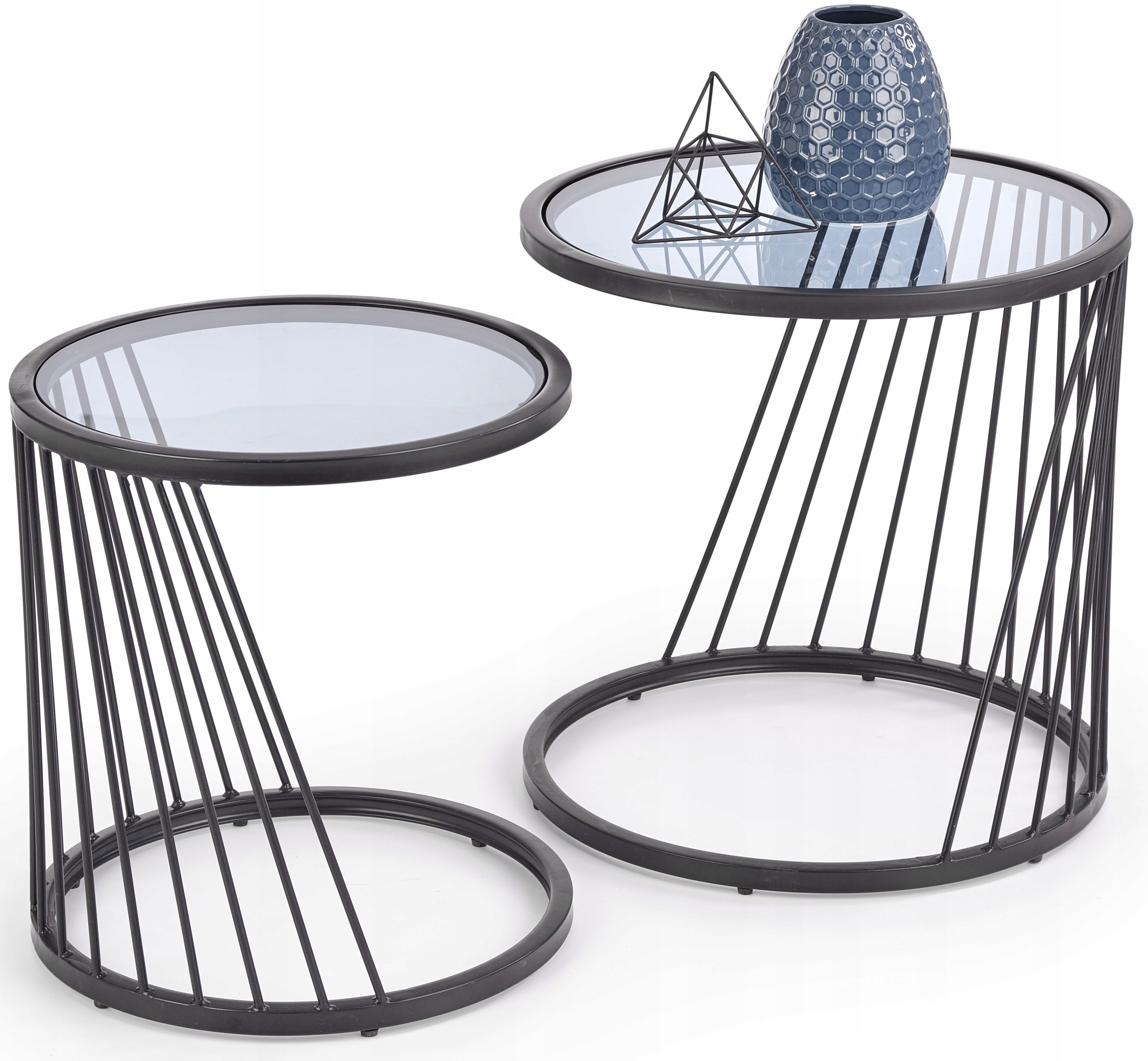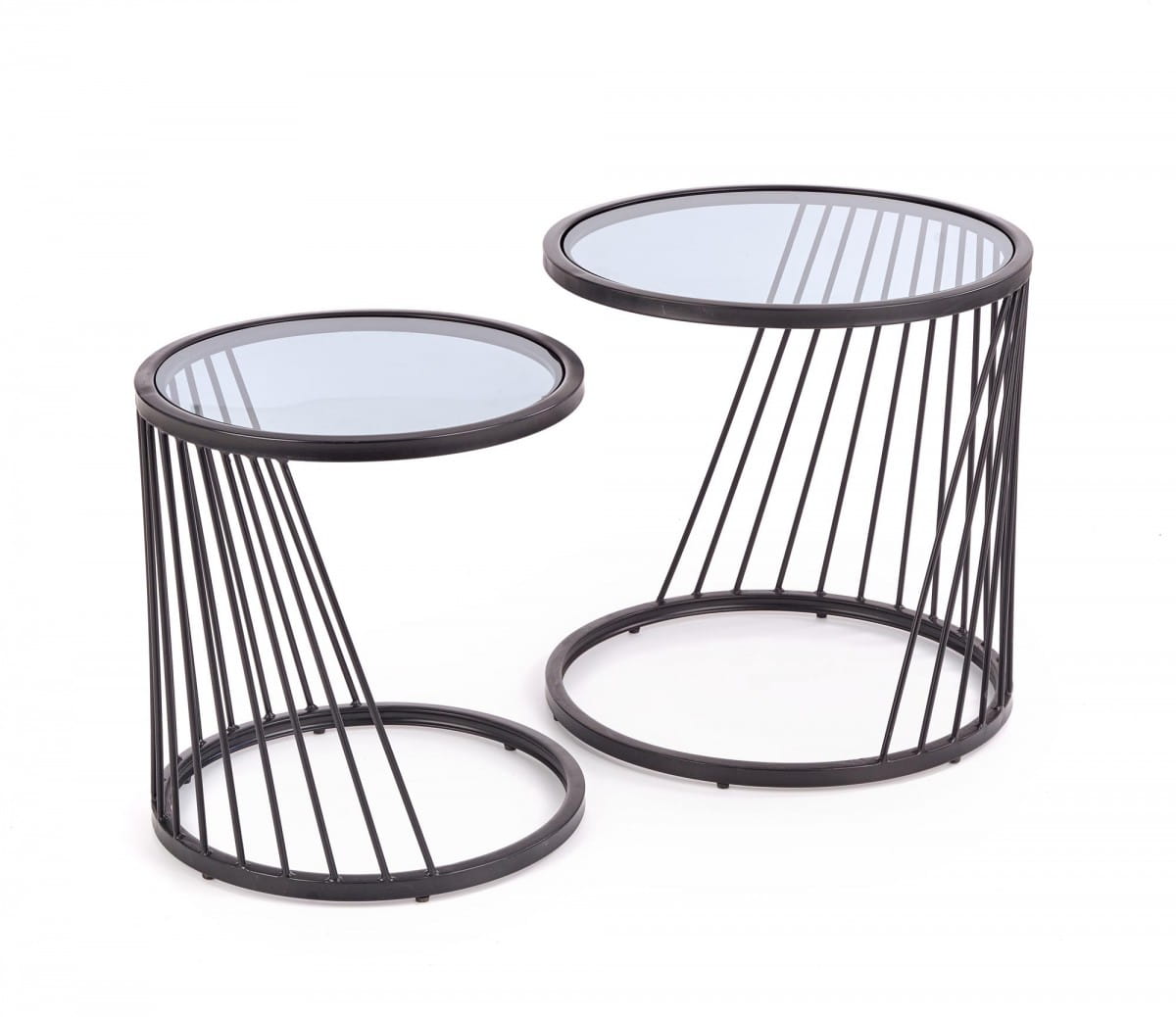 Črna steklena klubska mizica Antilla za dnevno sobo Komplet 2 klubskih mizic Halmar