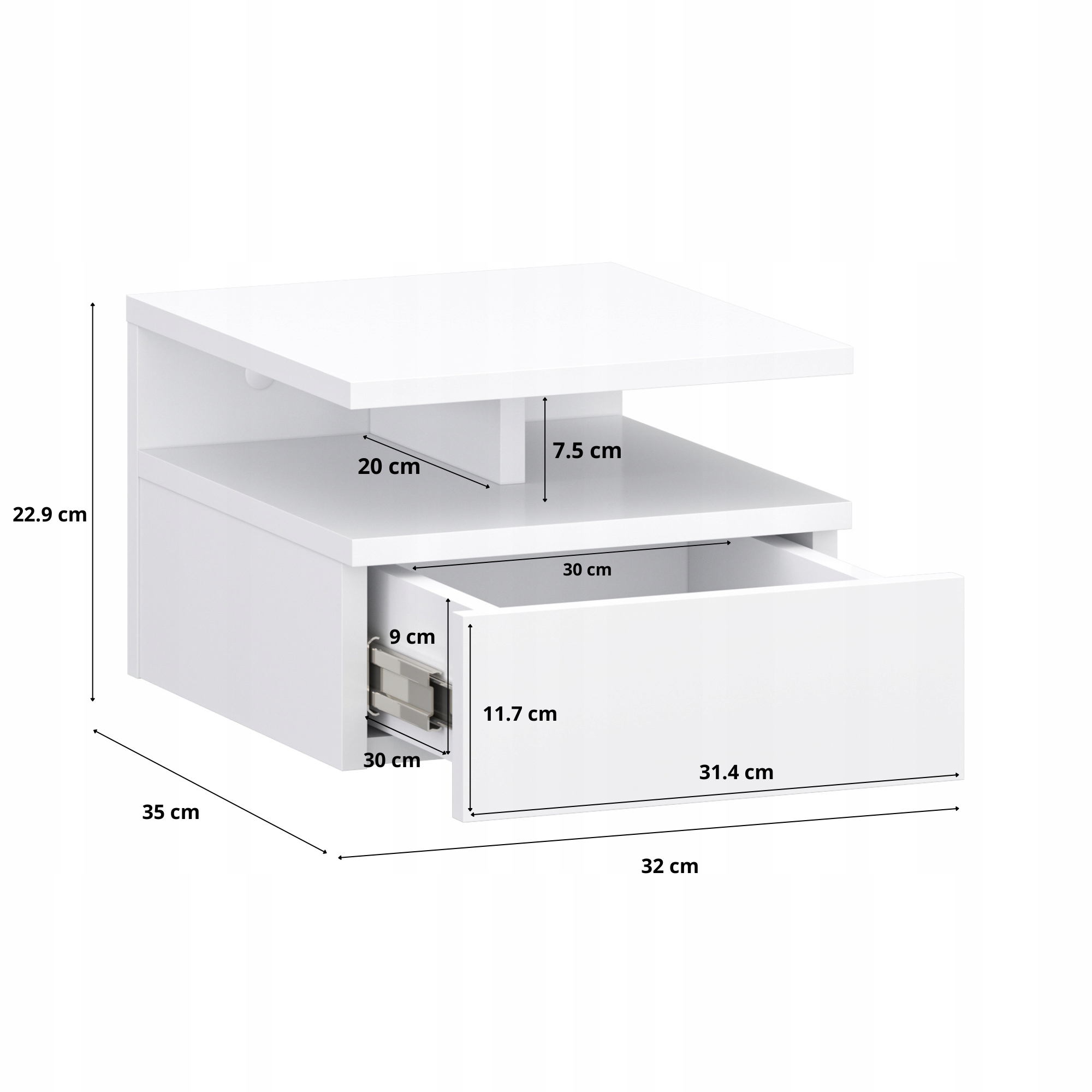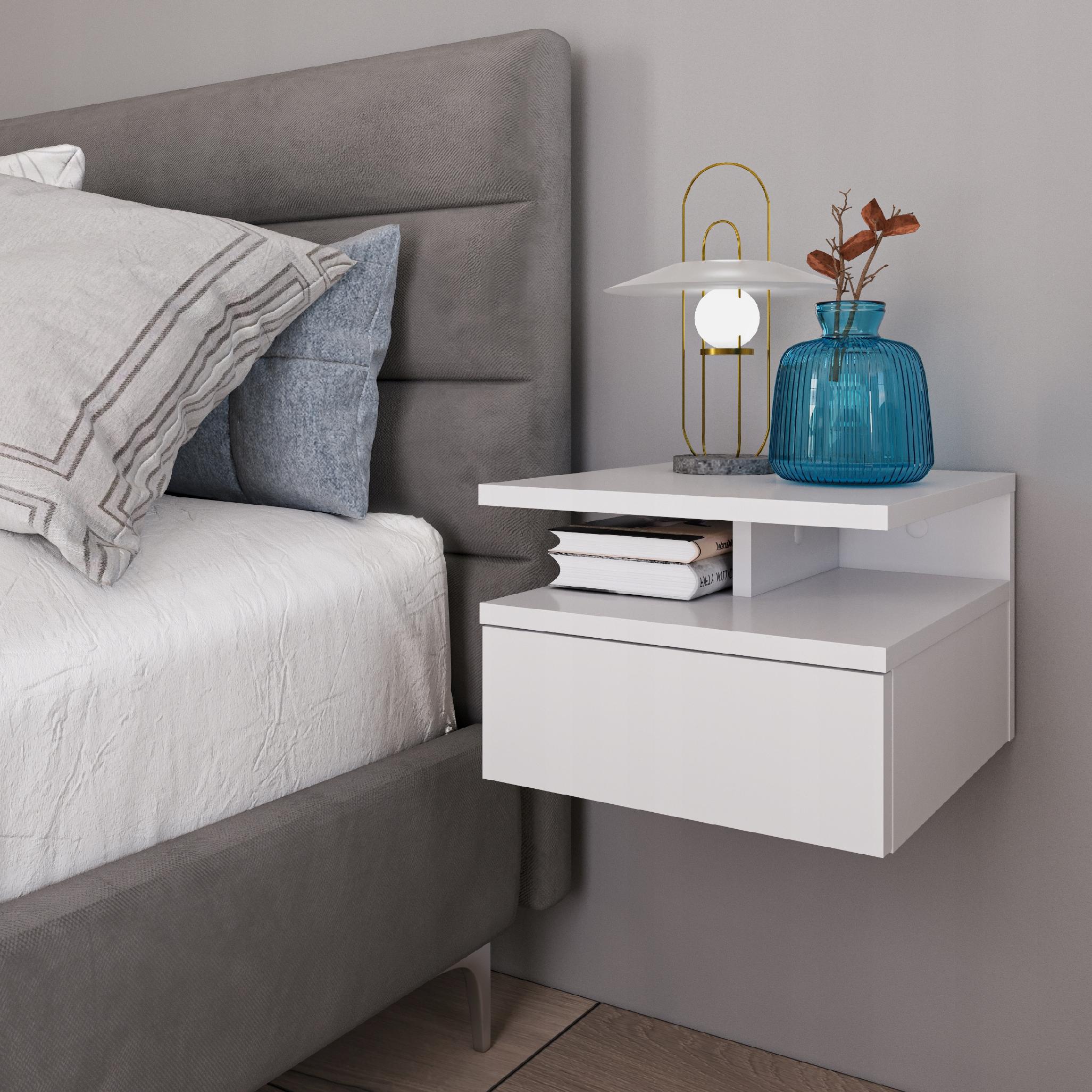 Bela stenska nočna omarica s predalom 32×35×23 cm Celoten opis