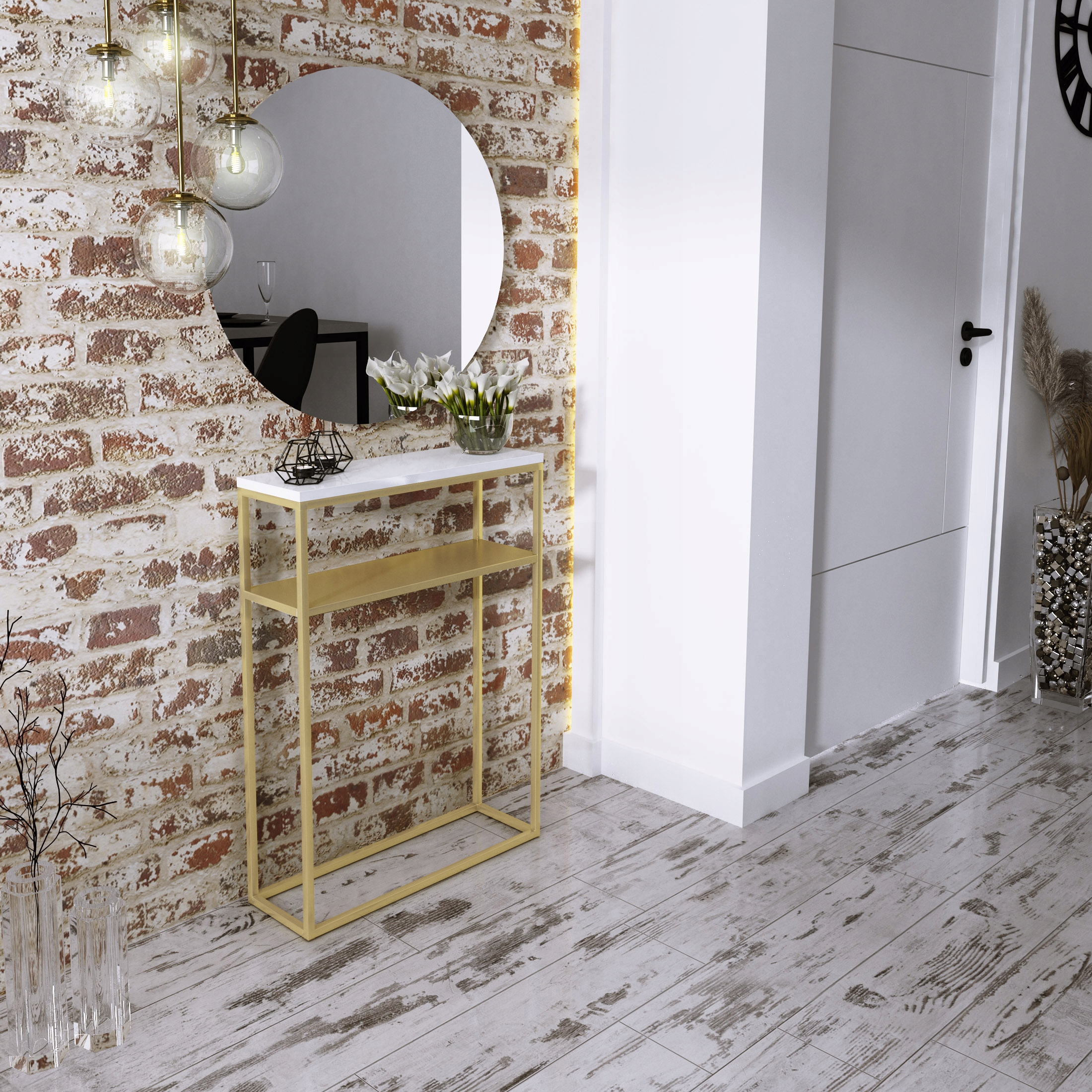 shumee Dvojna konzola 60x20 s kovinsko polico, predsoba iz profilov 15x15, zlato bela sijaj