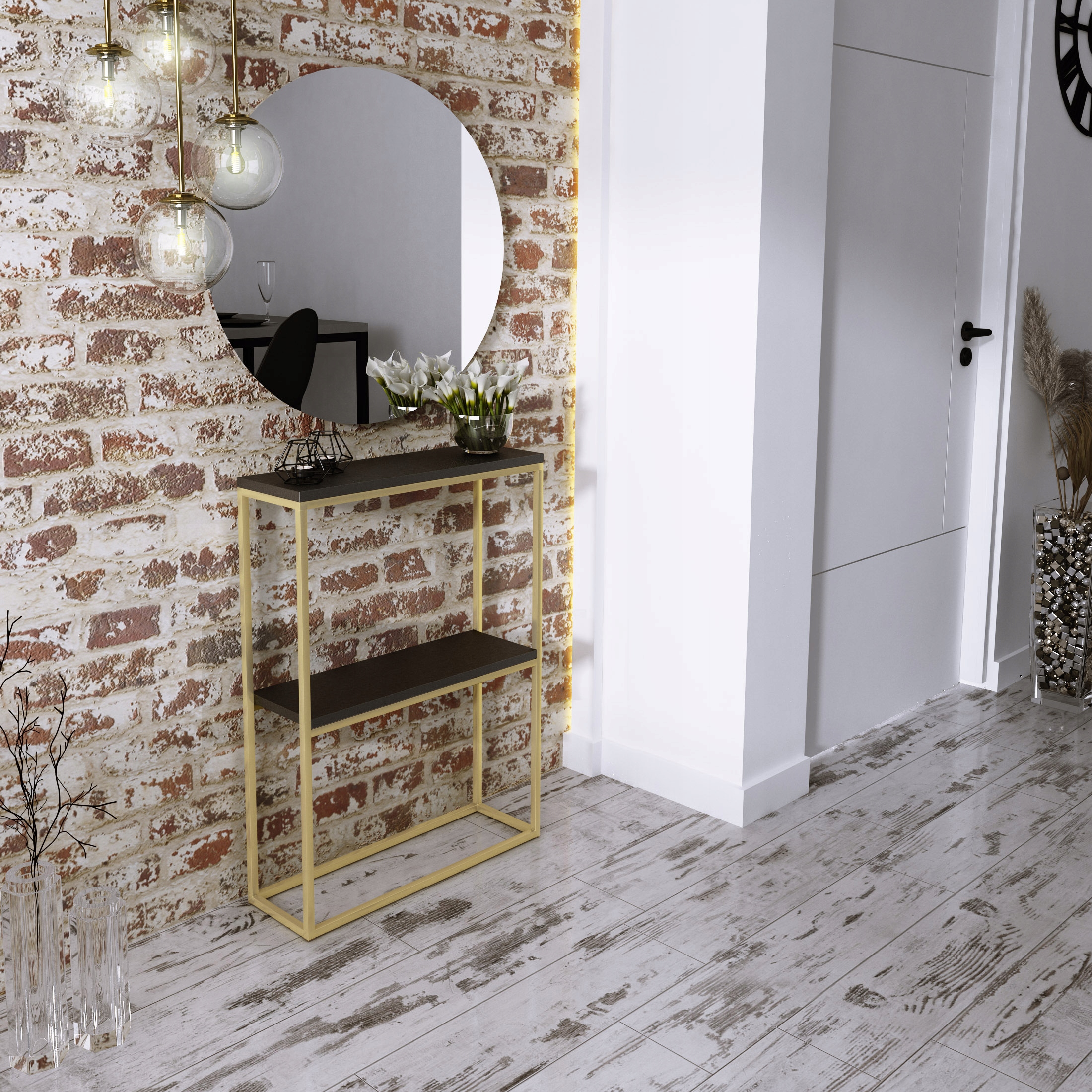 Edinstvena, praktična, elegantna in hkrati preprosta konzolna mizica za hodnik. Kombinacija kovine z najkakovostnejšim zgornjim delom. Masiven, pravokoten zgornji del, debeline 1,8 cm, je videti zelo estetsko privlačen. Profilirane kovinske noge. Prašno barvano. Popolnoma se bo podal v vaš hodnik ali celo dnevno sobo.
