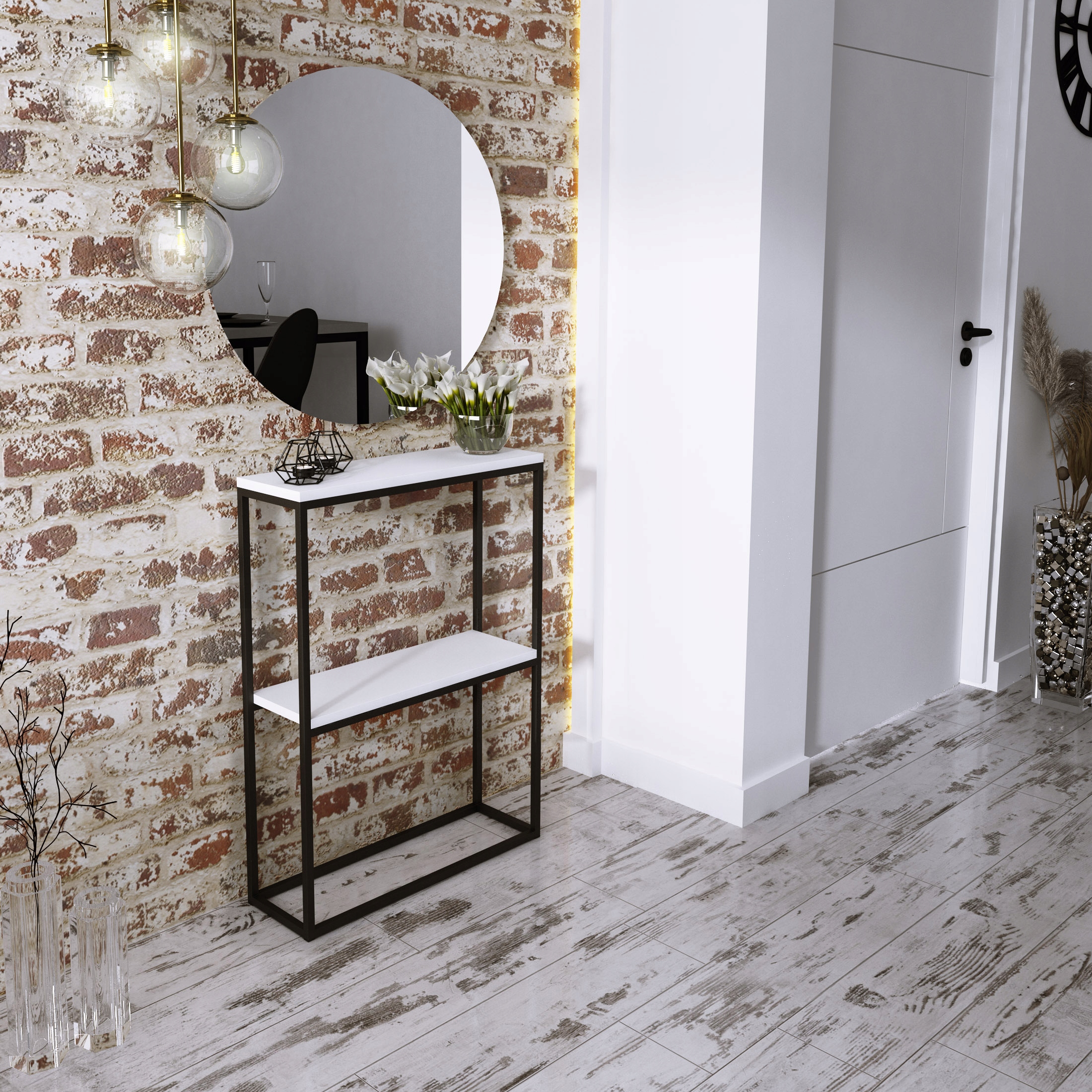 Edinstvena, praktična, elegantna in hkrati preprosta konzolna mizica za hodnik. Kombinacija kovine z najkakovostnejšim zgornjim delom. Masiven, pravokoten zgornji del, debeline 1,8 cm, je videti zelo estetsko privlačen. Profilirane kovinske noge. Prašno barvano. Popolnoma se bo podal v vaš hodnik ali celo dnevno sobo.