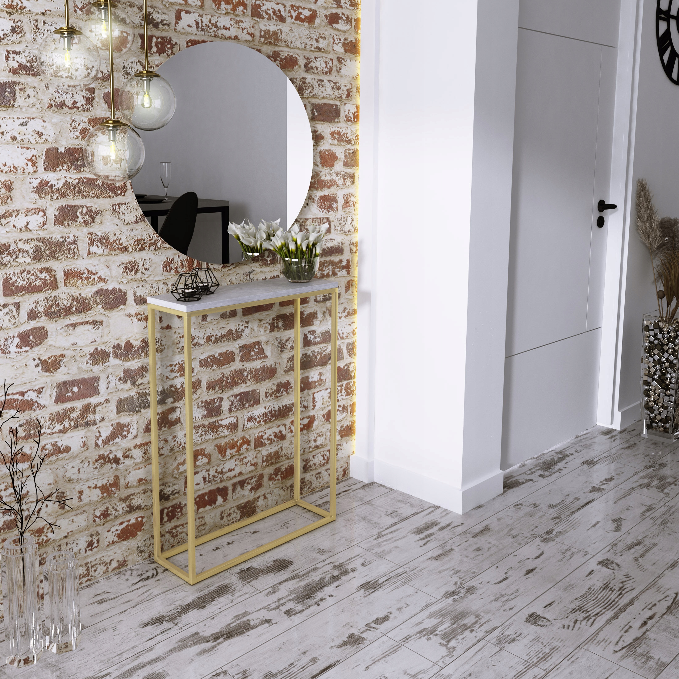 Edinstvena, praktična, elegantna in hkrati preprosta konzolna mizica za hodnik. Kombinacija kovine z zgornjim delom najvišje kakovosti. Masiven, pravokoten zgornji del, debeline 1,8 cm, je videti zelo estetsko privlačen. Profilirane kovinske noge. Prašno barvano. Popolnoma se bo podal v vaš hodnik ali celo dnevno sobo.