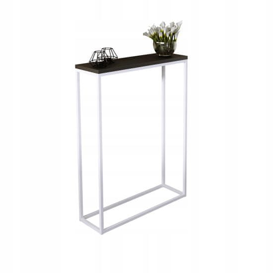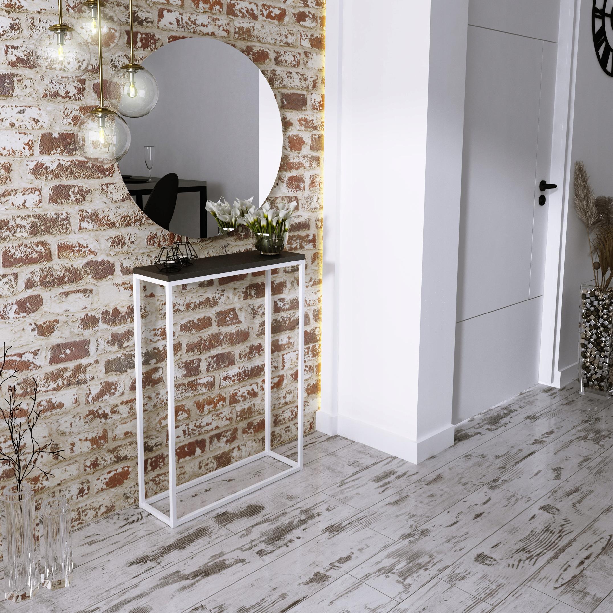 Edinstvena, praktična, elegantna in hkrati preprosta konzolna mizica za hodnik. Kombinacija kovine z najkakovostnejšim zgornjim delom. Masiven, pravokoten zgornji del, debeline 1,8 cm, je videti zelo estetsko privlačen. Profilirane kovinske noge. Prašno barvano. Popolnoma se bo podal v vaš hodnik ali celo dnevno sobo.