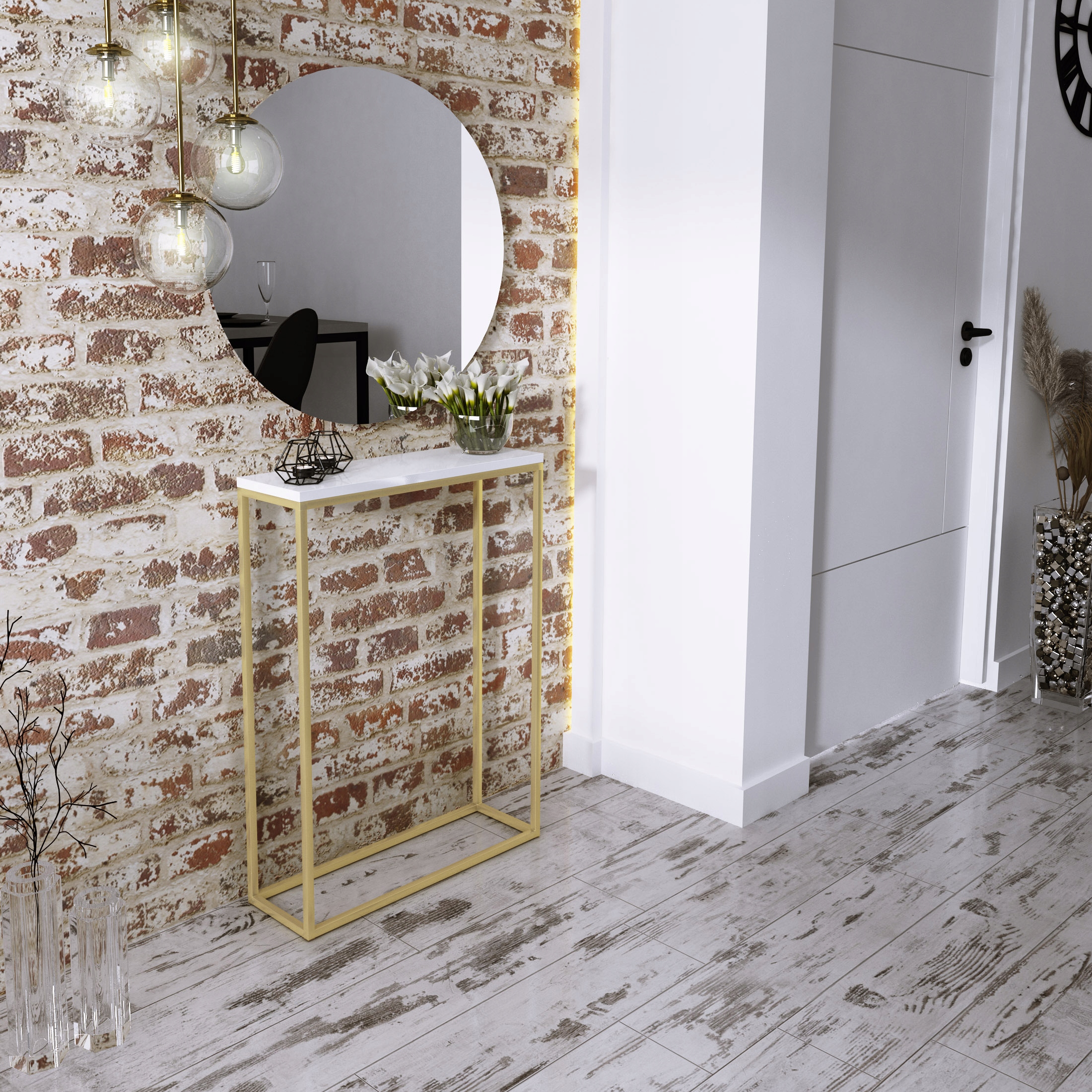 Edinstvena, praktična, elegantna in hkrati preprosta konzolna mizica za hodnik. Kombinacija kovine z najkakovostnejšim zgornjim delom. Masiven, pravokoten zgornji del, debeline 1,8 cm, je videti zelo estetsko privlačen. Profilirane kovinske noge. Prašno barvano. Popolnoma se bo podal v vaš hodnik ali celo dnevno sobo.