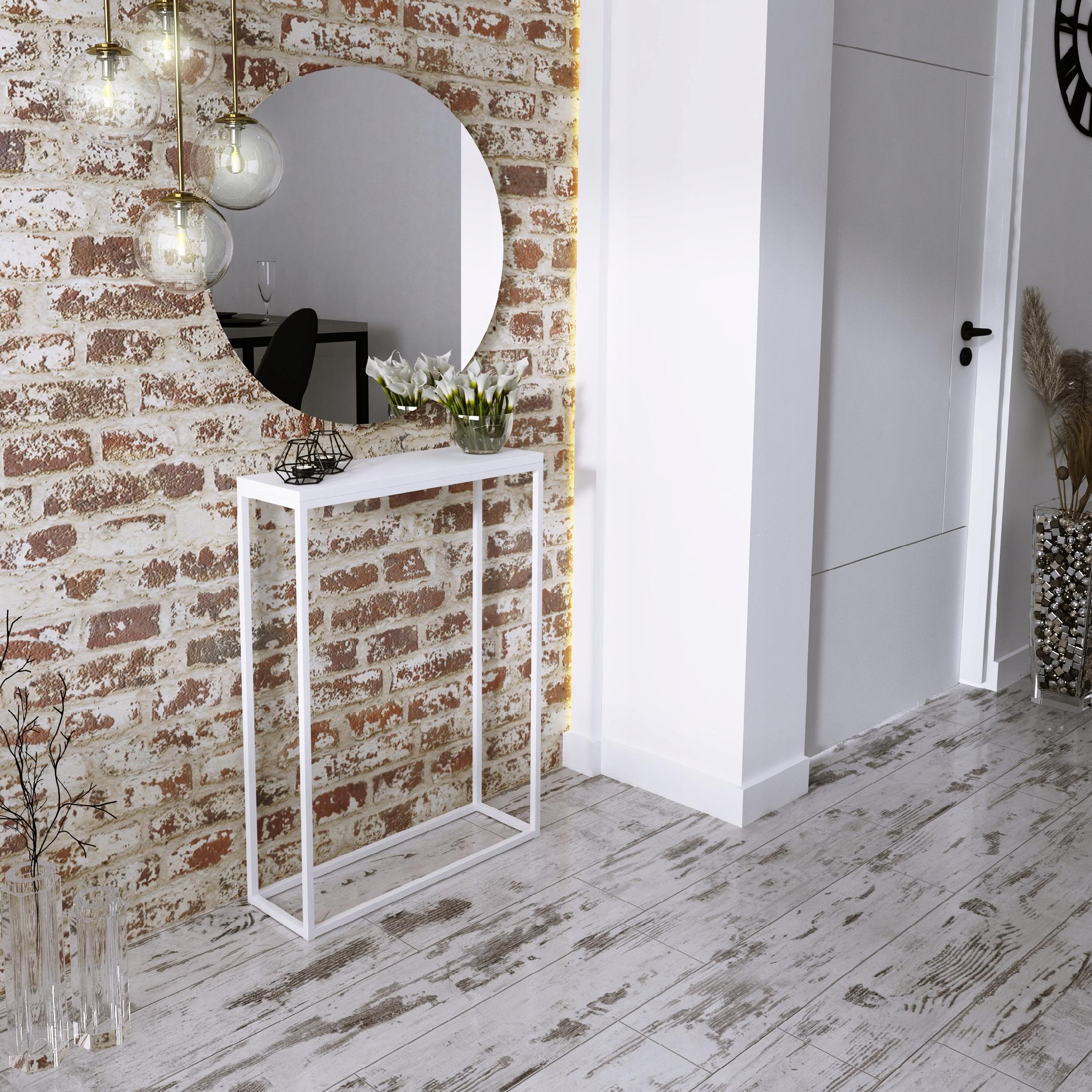 Edinstvena, praktična, elegantna in hkrati preprosta konzolna mizica za hodnik. Kombinacija kovine z najkakovostnejšim zgornjim delom. Masiven, pravokoten zgornji del, debeline 1,8 cm, je videti zelo estetsko privlačen. Profilirane kovinske noge. Prašno barvano. Popolnoma se bo podal v vaš hodnik ali celo dnevno sobo.