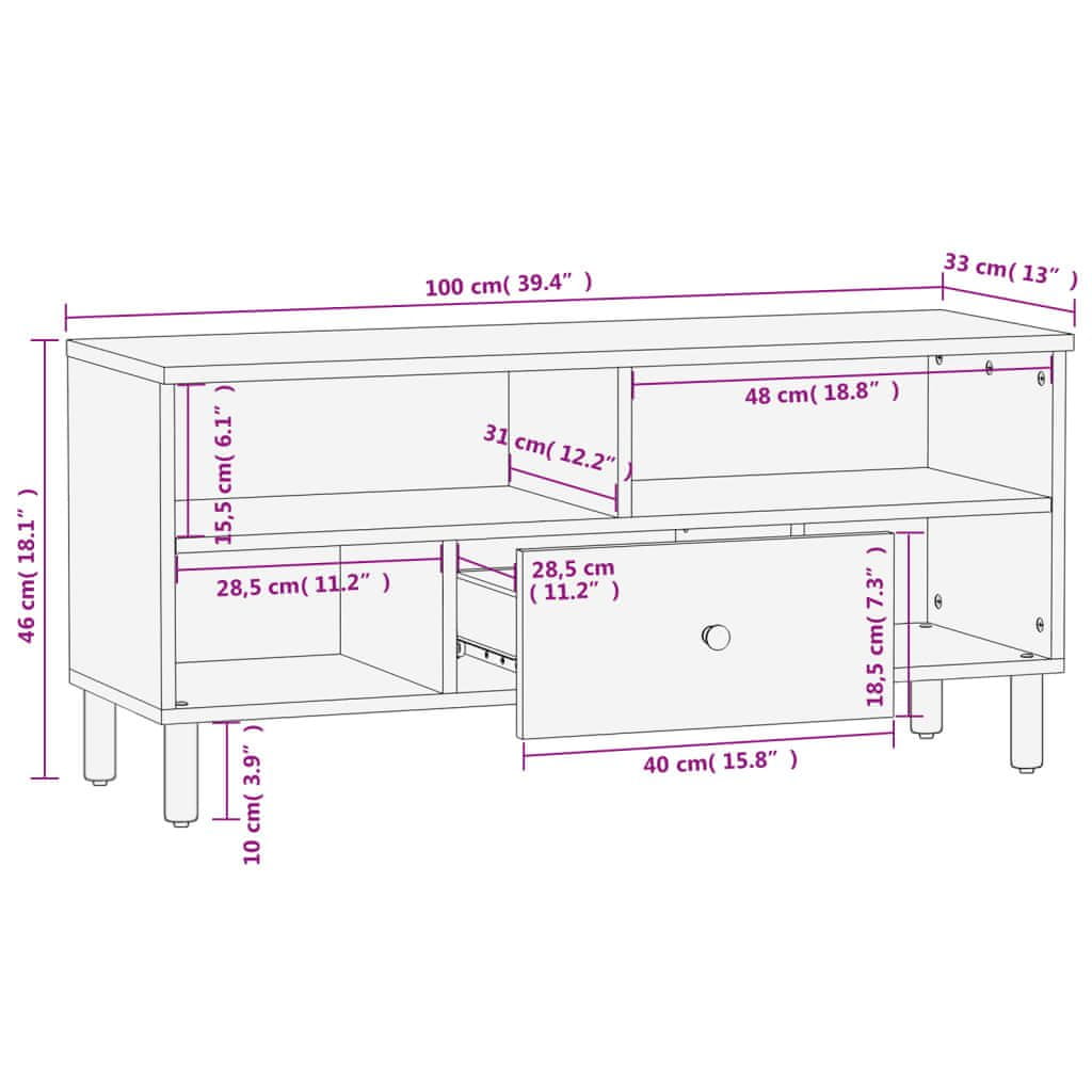 shumee TV omarica črna 100x33x46 cm trden mangov les