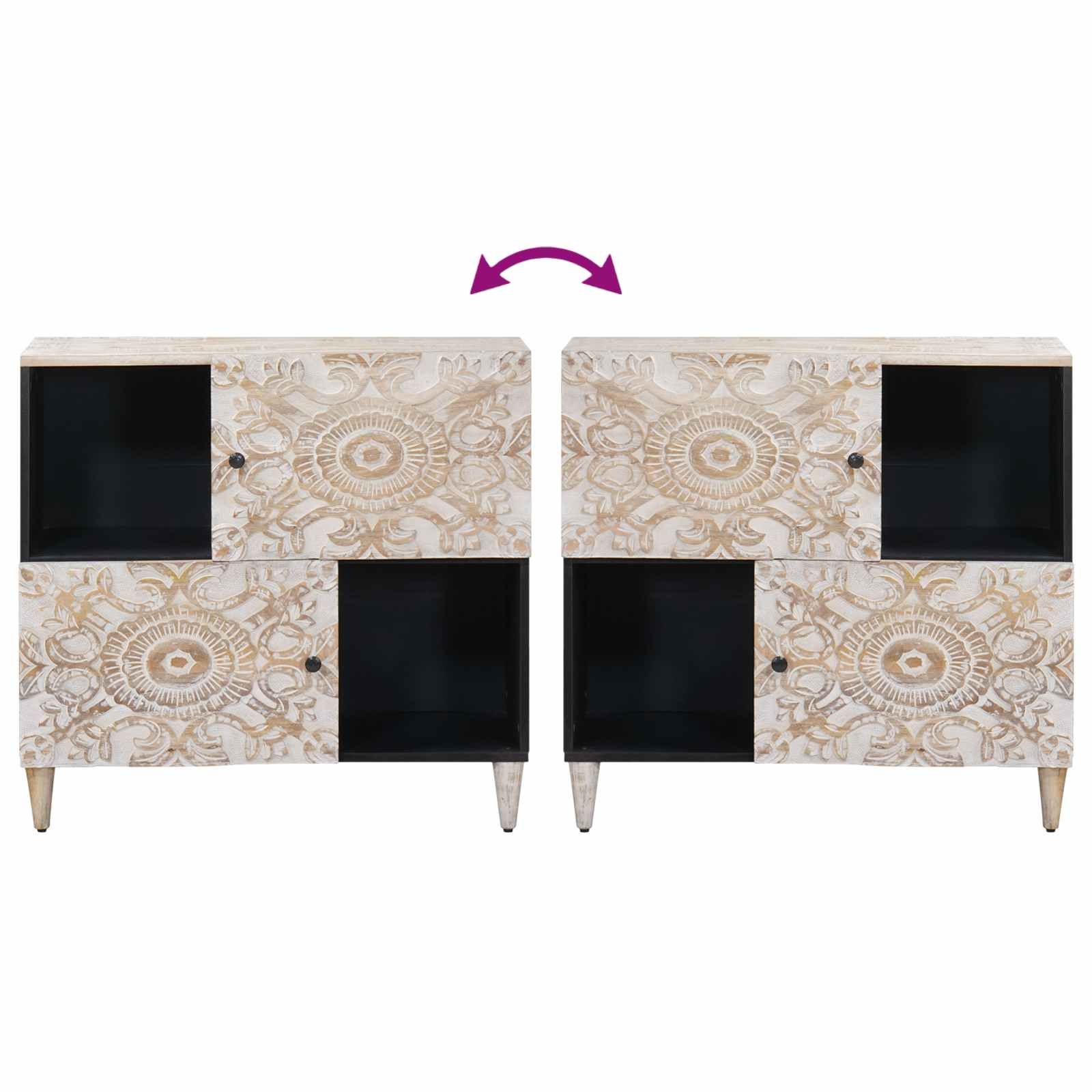 Vidaxl Strani šal z vrati Bela 80 x 33,5 x 75 cm Masiven les manga