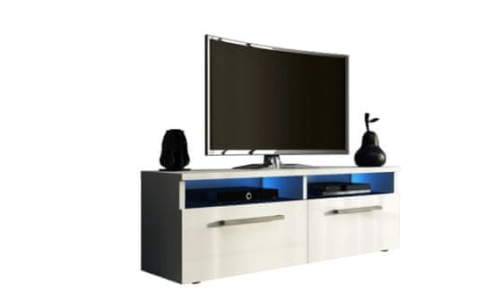 Omara RTV Bonn 100 cm je eleganten kos pohištva, izdelan v sodobnem slogu, ki bo odličen kot pohištveni element v dnevni sobi ali dnevni sobi, opremljeni v tem slogu. Vaša dnevna soba bo videti elegantna in elegantna, sijajna sprednja stran pa bo poudarila sodoben slog vaše notranjosti. Omara ima dvoje vrat, ki se odpirajo navzdol, in dve polici za opremo RTV, kot so igralne konzole ali predvajalniki. Če želite svojo elektroniko prikazati še bolj nazorno, si lahko omislite dodatno osvetlitev LED, ki jo lahko kupite s tem modelom. V prostorne predale za vrati lahko spravite vse predmete, ki še niso našli svojega stalnega mesta. RTV omarica Bonn 100 cm je kos pohištva, ki bo spremenil slog vaše dnevne sobe!