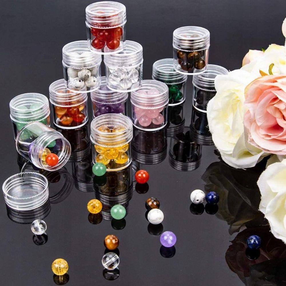 🧴 KOMPLET 30 PRZEPROZORNIH ZAKRČNIH POSODIC V KASETI – ORGANIZATOR ZA MANIKIRO IN DROBNE PRIPOMOČKE