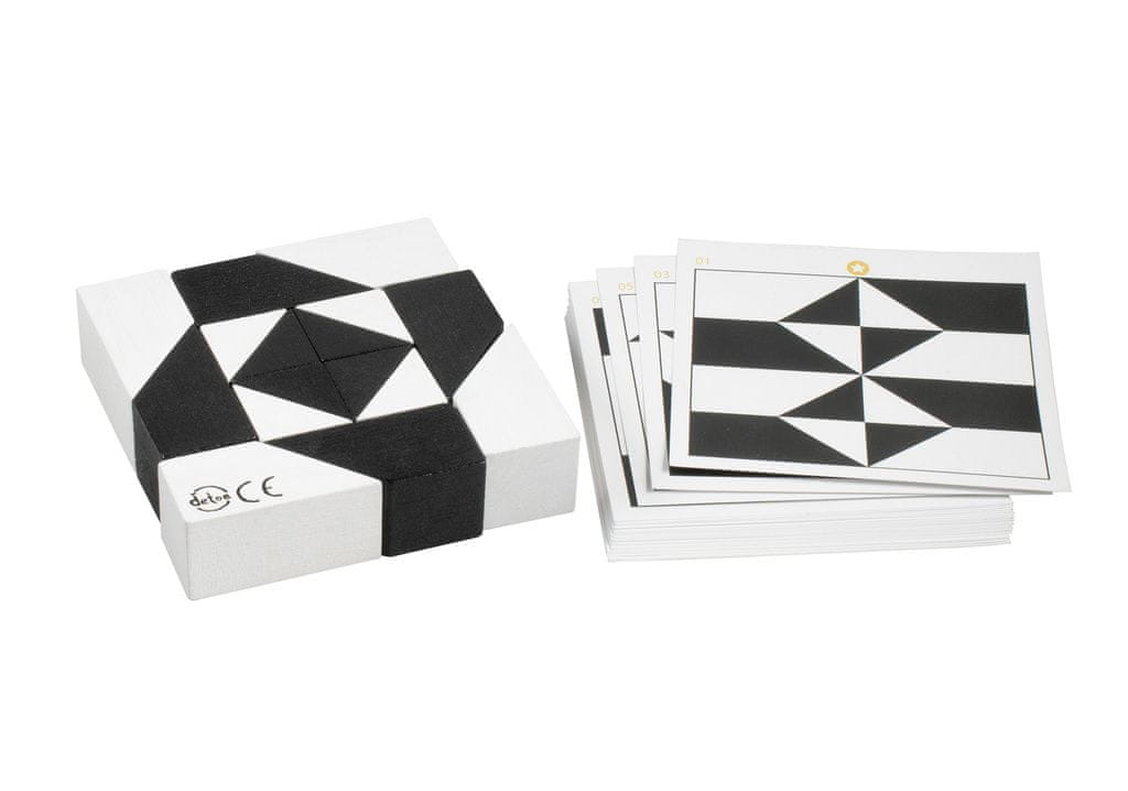 Črno-beli tangram, sestavljanka za enega igralca. Črne in bele kamne je treba zgraditi po predlogi, da zapolnijo površino kvadrata v skladu s papirnatimi predlogami.