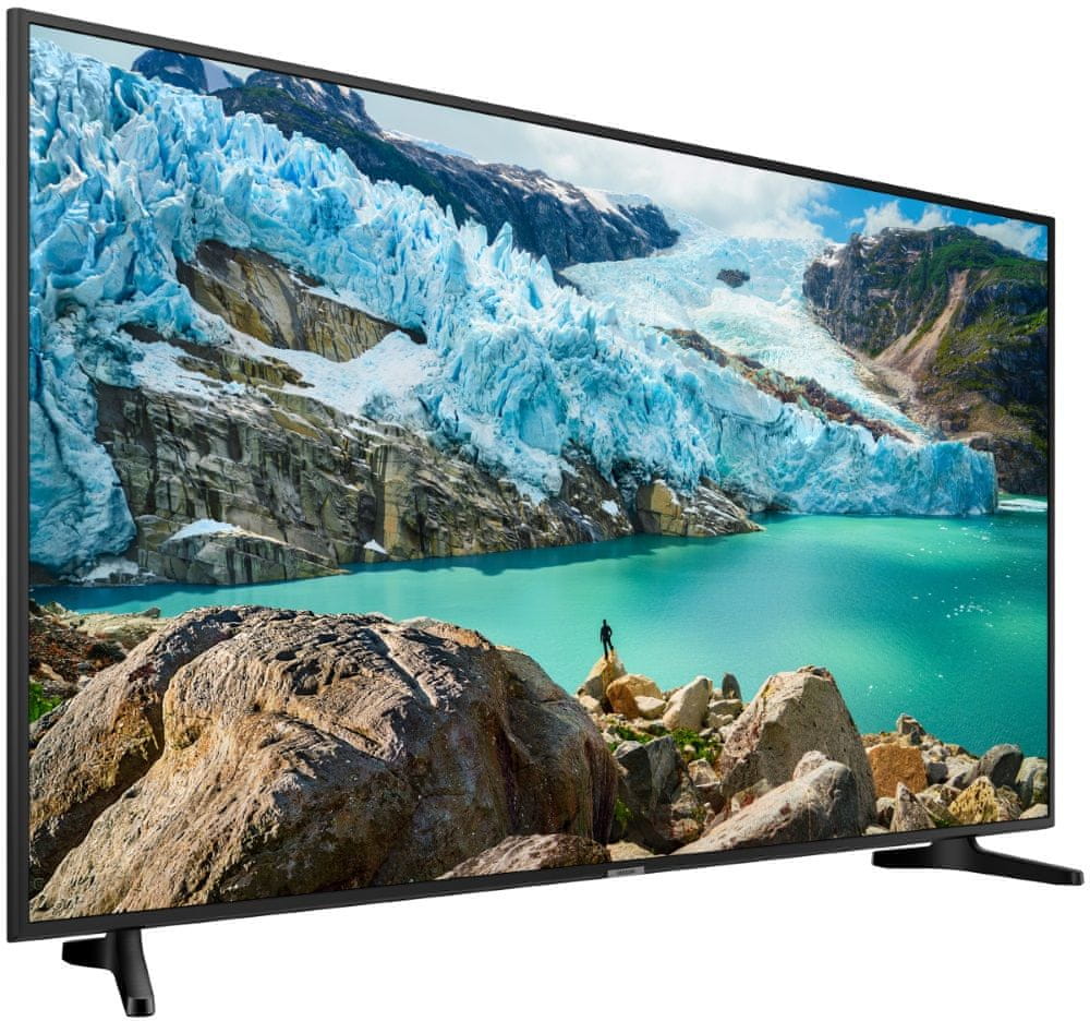 Sodobna eleganca Samsungovega televizorja Ultra HD dodelano in elegantno zasnovo vaše notranjosti v stanovanju. Uživajte v jasni sliki v ločljivosti 4K UHD, ki ima 4× več slikovnih pik kot televizija Full HD. Odslej boste v vsakem prizoru videli vse najmanjše podrobnosti.