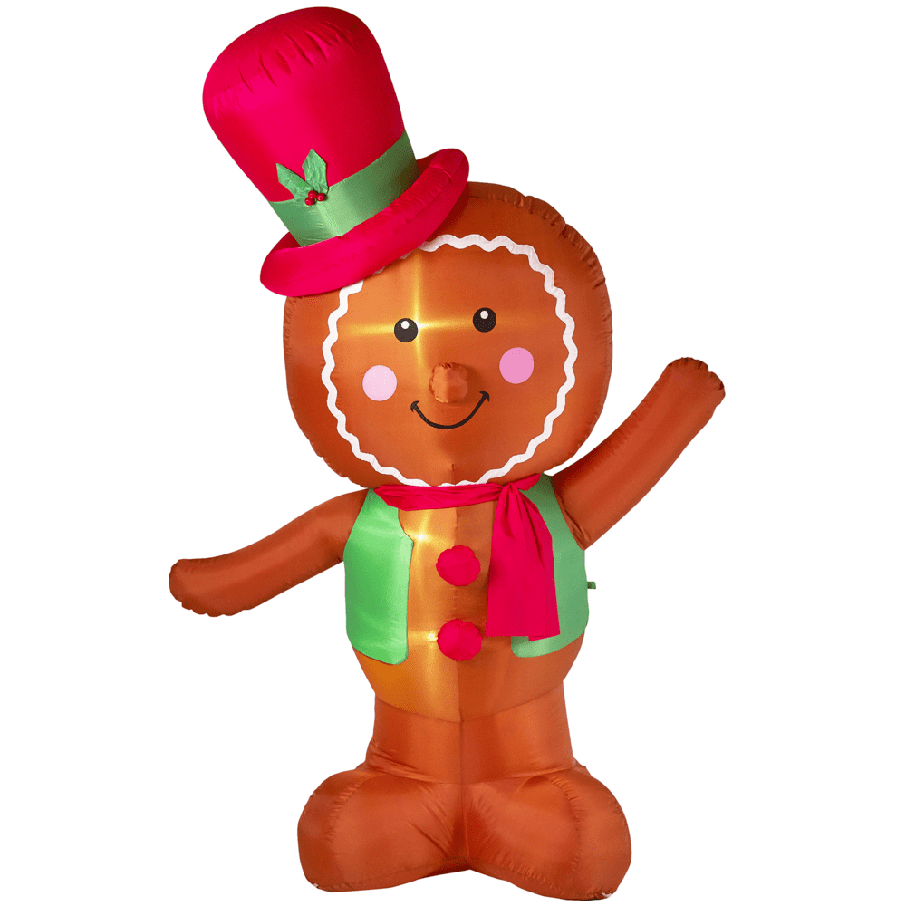 Nič ni videti bolj praznično kot hiša, polna razsvetljave LED. Napihljiva hišica iz medenjakov, ki stoji ob vhodnih vratih in pozdravlja mimoidoče, bo zagotovo pritegnila pozornost številnih gostov. To sladko dekoracijo prenesite na svoj zunanji prostor, vrt, dvorišče ali balkon in ustvarite pravo božično vzdušje. Visoka figura je izdelana iz trpežne tkanine in ima samonapihljiv element, ki se vklopi takoj, ko jo priključite. Okrasek je opremljen z zatiči in vrvmi, ki preprečujejo, da bi odletel.