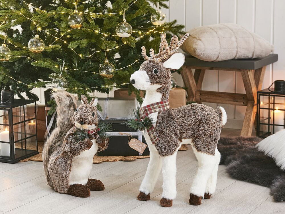 S to figuro obogatite notranjost svojega stanovanja. Izdelana je iz visokokakovostnega umetnega krzna, je prijetna na otip in ne potrebuje pogoste nege. Zaradi svoje velikosti ga lahko postavite na tla, ob božično drevo ali na stransko mizico ali mizico za kavo. Očarljiva barvna kombinacija omogoča, da veverica izstopa od drugih dodatkov.