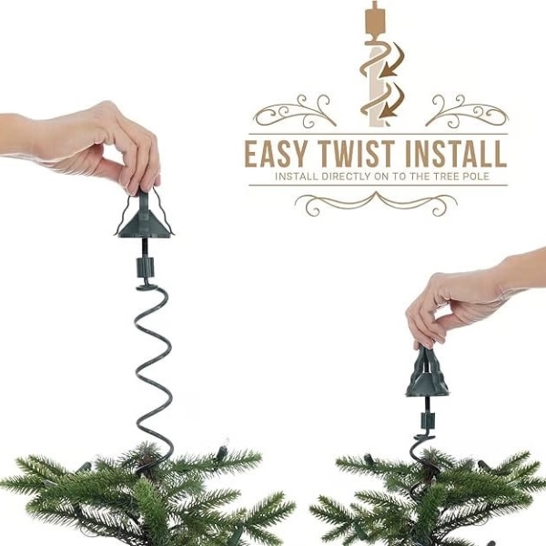 Prilagodljivi nastavki trdno oprimejo osnovo vrhnjega okraska in vejo drevesa za stabilno namestitev brez majanja.