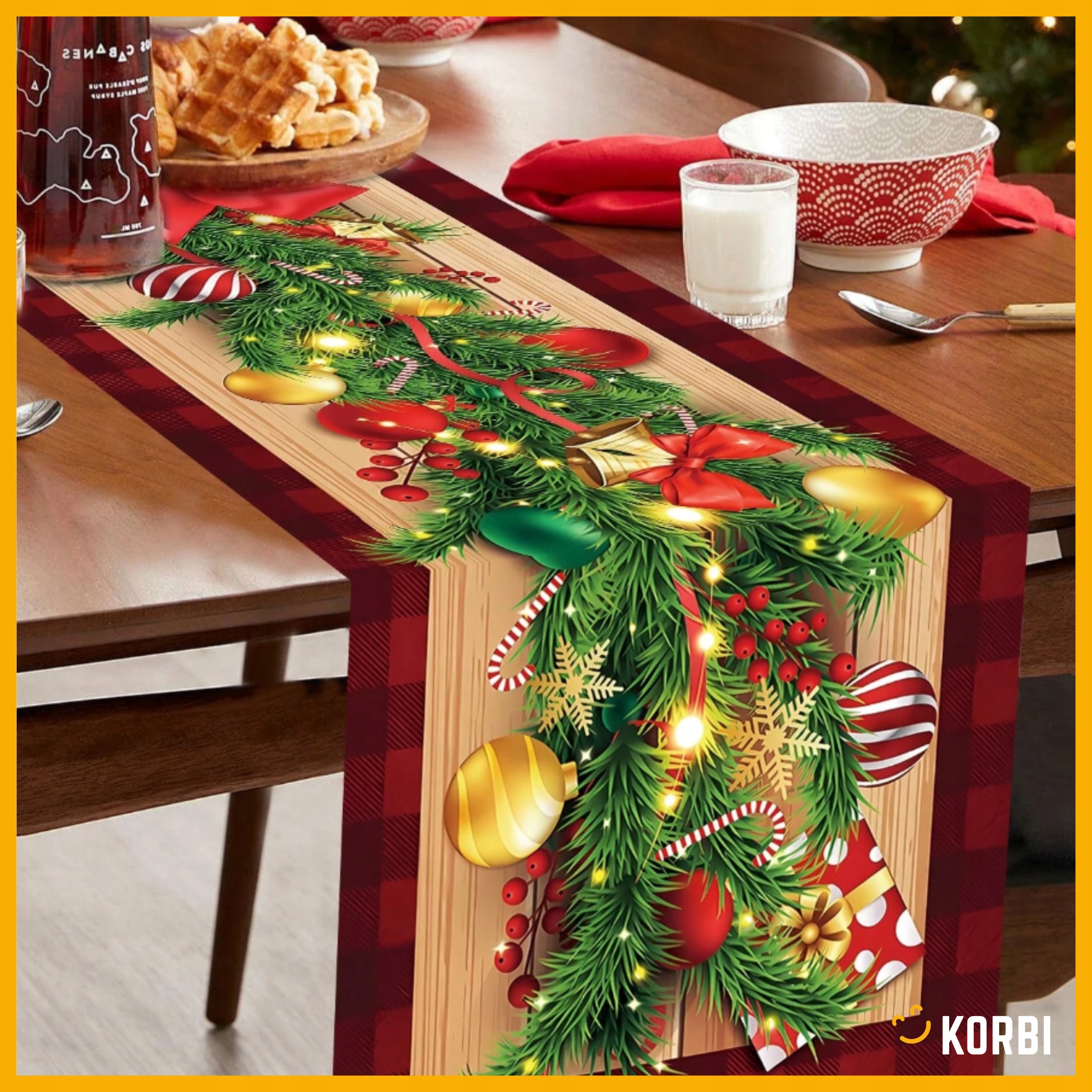 🎁 Praznična eleganca na vaši mizi – klasičen božični stil tekača bo vsakemu prostoru dodal poseben čar. Odlično se ujema s porcelanom, svečami in naravnimi dekoracijami, ustvarja elegantno praznično postavitev.