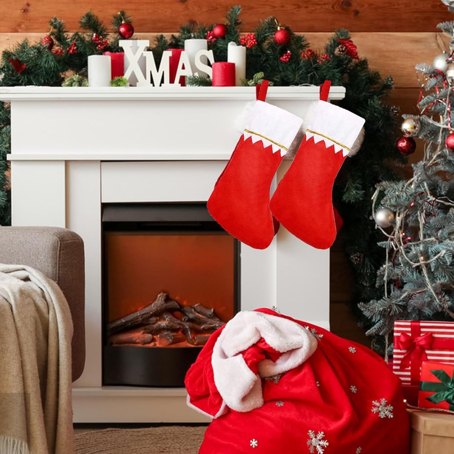Komplet 4 božičnih nogavic za kamin za darila, belo-rdeče