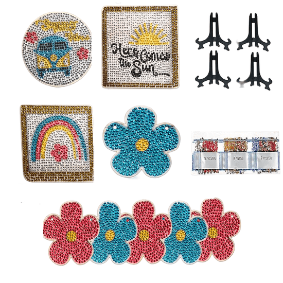 - Večnivojski okraski: Komplet vključuje 9 lesenih znakov z diamantnim motivom, 4 plastična stojala, 1 vrv, 1 diamantno pisalo, lepilo in diamantne kroglice, kar zagotavlja neskončno ustvarjalnost.