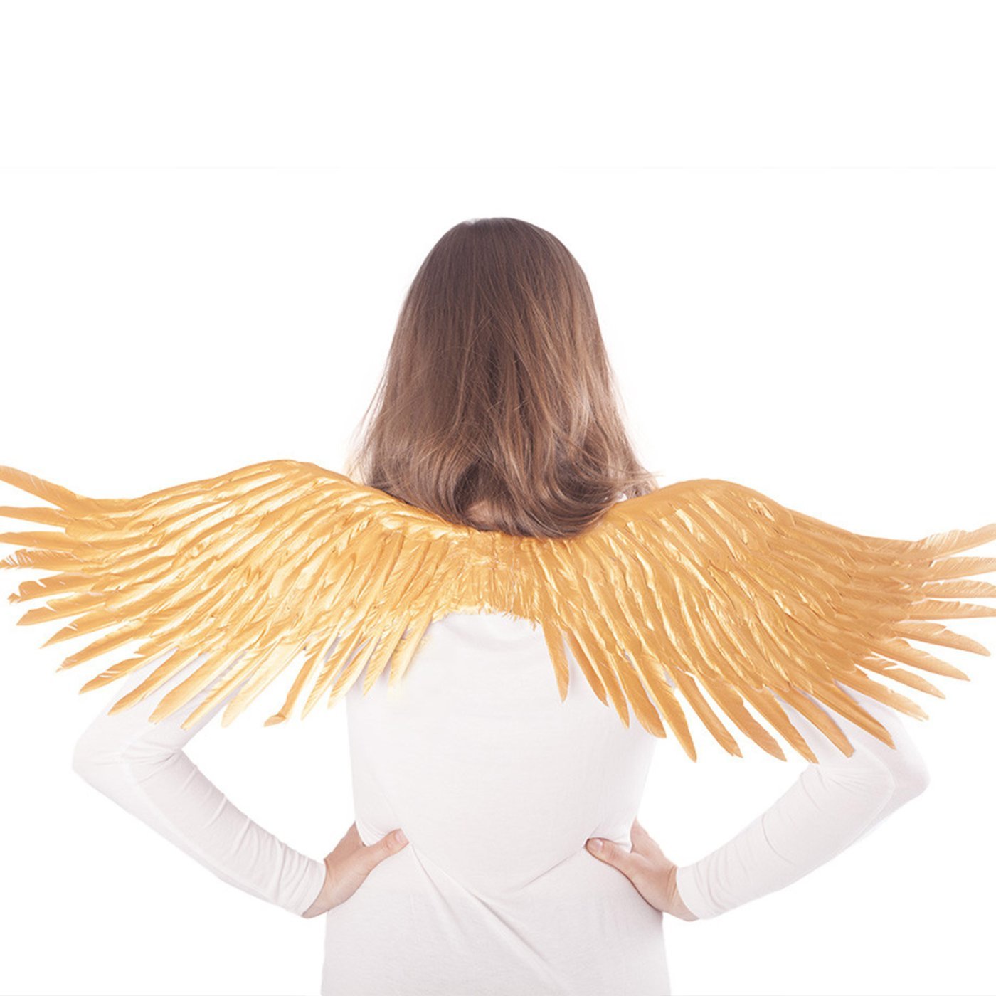 Lepa krila za prave angele v zlati barvi! Ta čudovit kos na gumici je odličen dodatek k angelskemu kostumu. Velikost kril po razvitju je približno 96 cm.