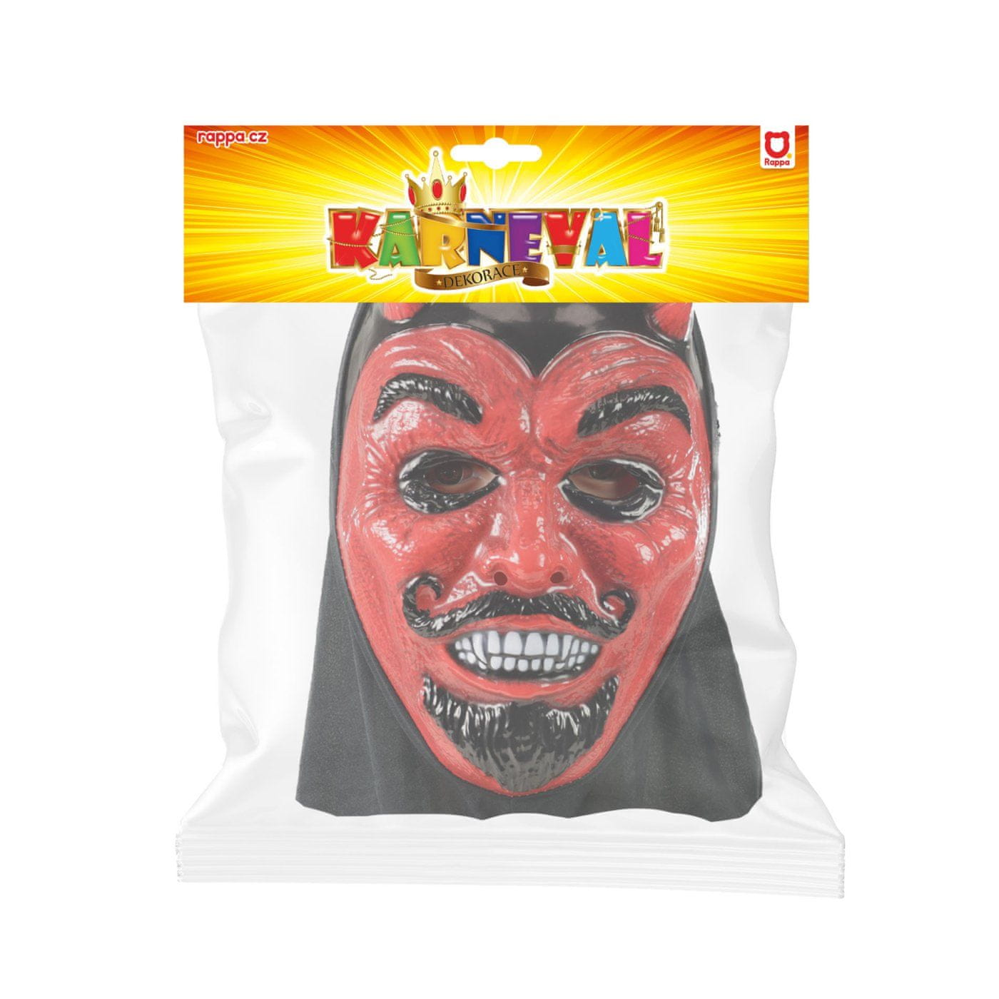 Maska z motivom strašnega hudiča ne sme manjkati v vaši karnevalski zbirki! Maska je primerna tudi za zabavo za noč čarovnic, božično zabavo ali karneval. Sprednji del maske je izdelan iz plastike, na katero je pritrjeno pokrivalo iz blaga.
