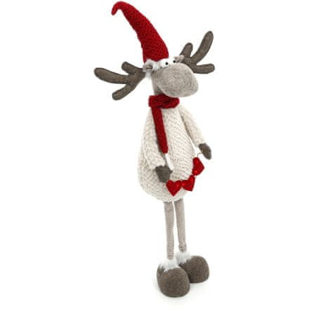Plišasti severni jelen z lučko LED Višina 91 cm Število diod LED: 6 Barva svetlobe: topla bela Svetleči srčki, beli dodatki Celoten opis