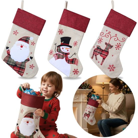 Ta komplet 3 božičnih darilnih nogavic je klasičen in eleganten okras, ki bo v vaš dom vnesel posebno božično vzdušje.