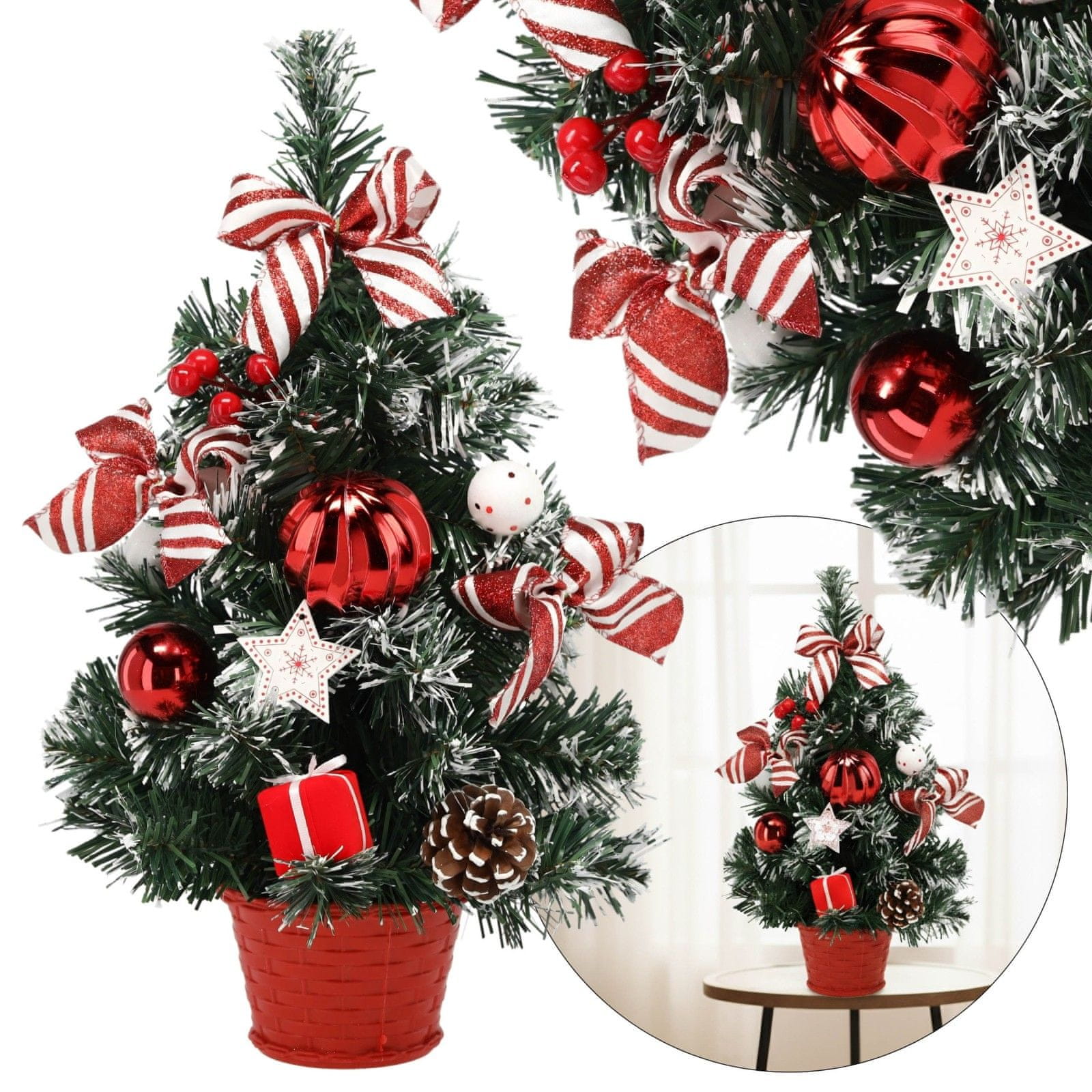 Ta 40 cm visoko božično drevo v beli in rdeči barvi je elegantna praznična dekoracija za vsak notranji prostor.