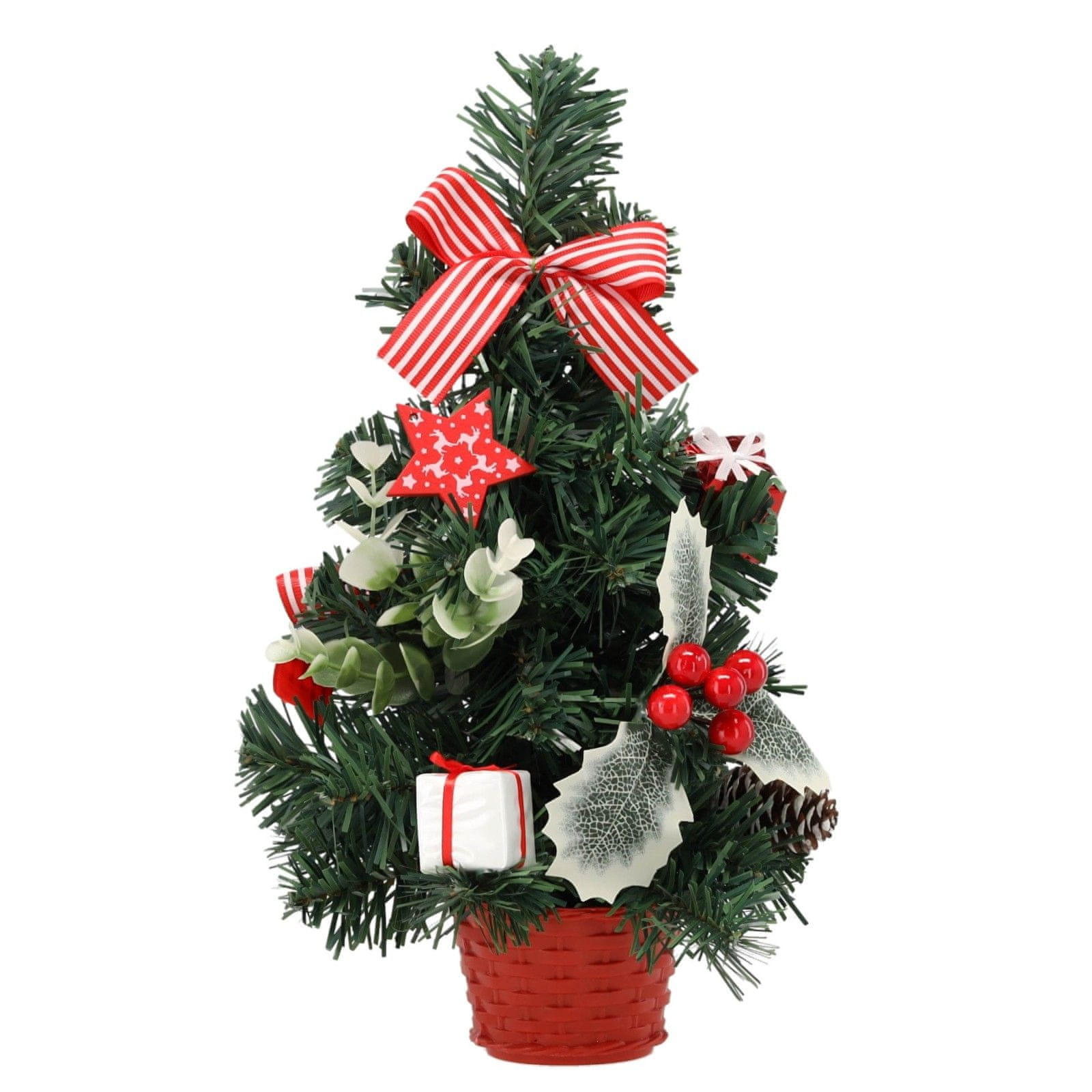 sarcia.eu MAJHNO umetno božično drevo, rdeče z brinjem v loncu, OKRAŠENO 30 cm